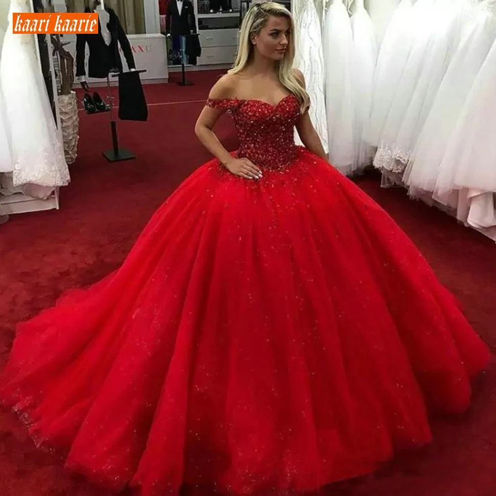 red ball gown wedding dress
