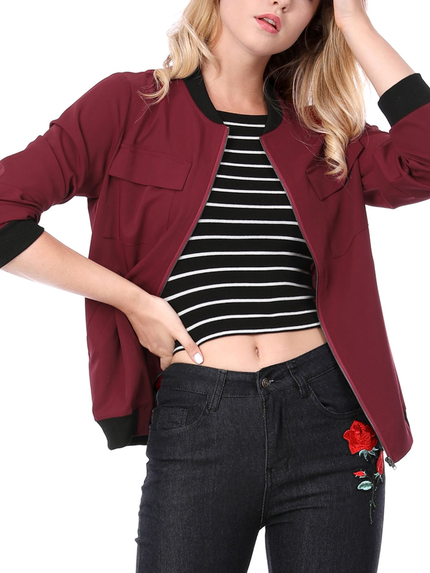 red bomber jacket women