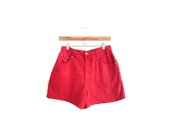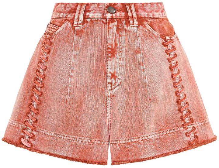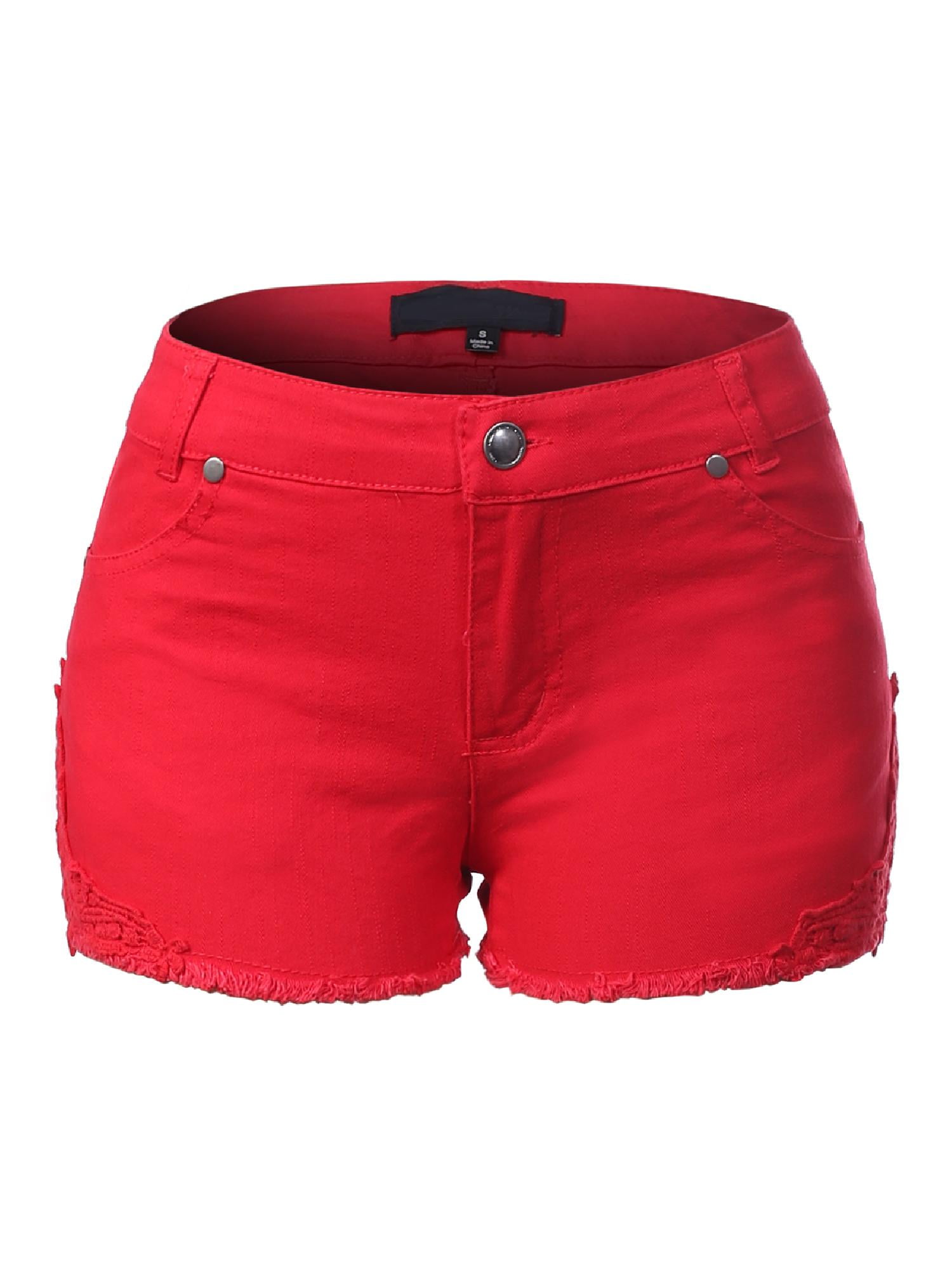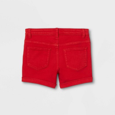 red denim shorts