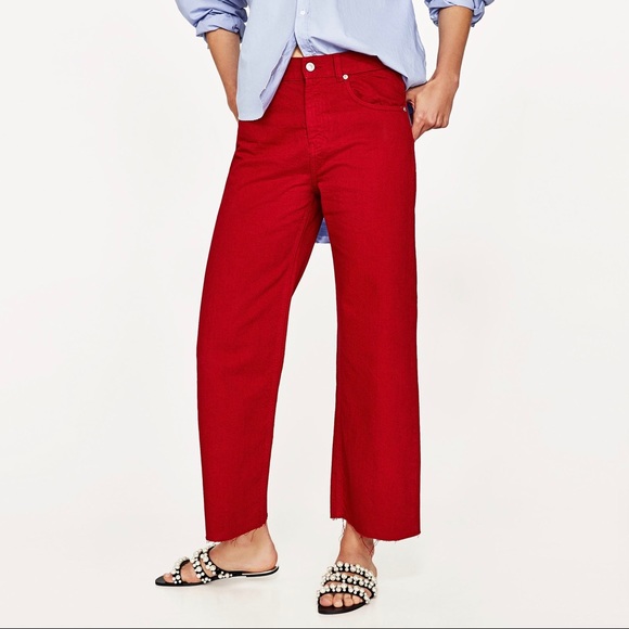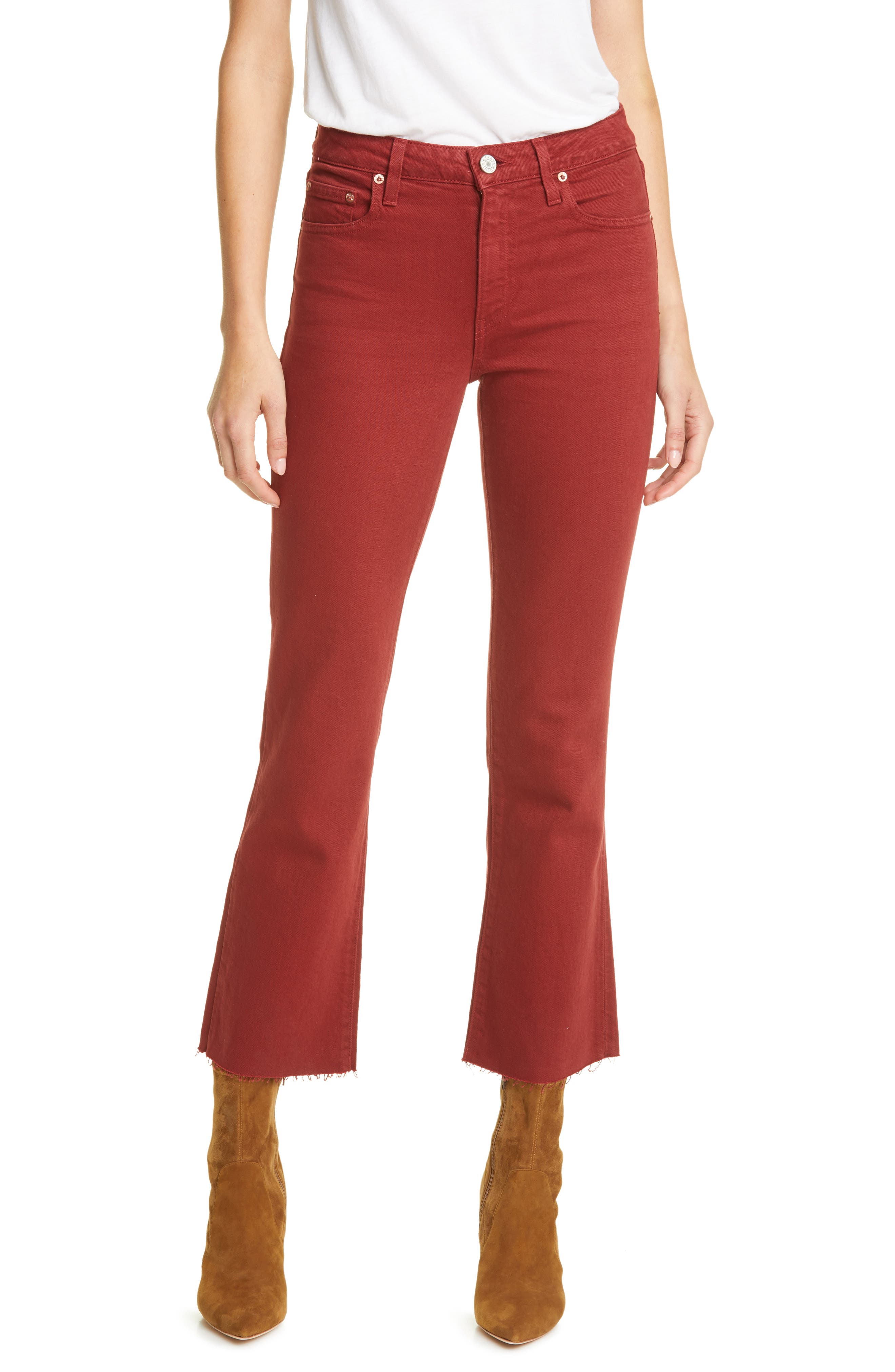 red flare jeans