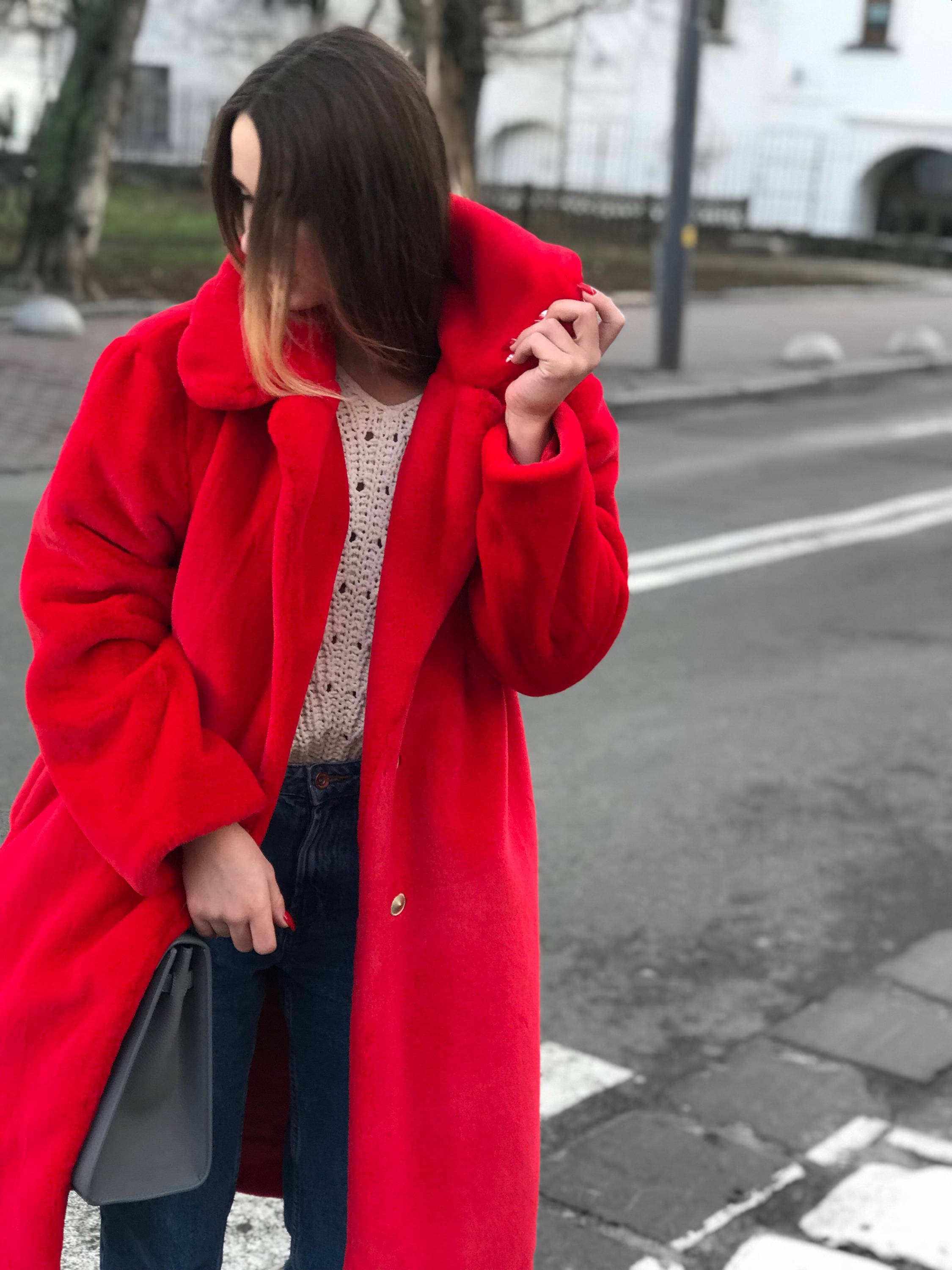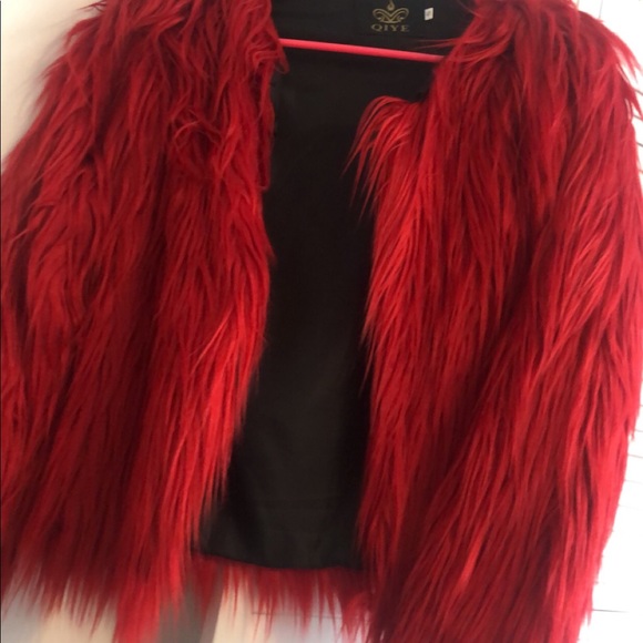 red furry jacket