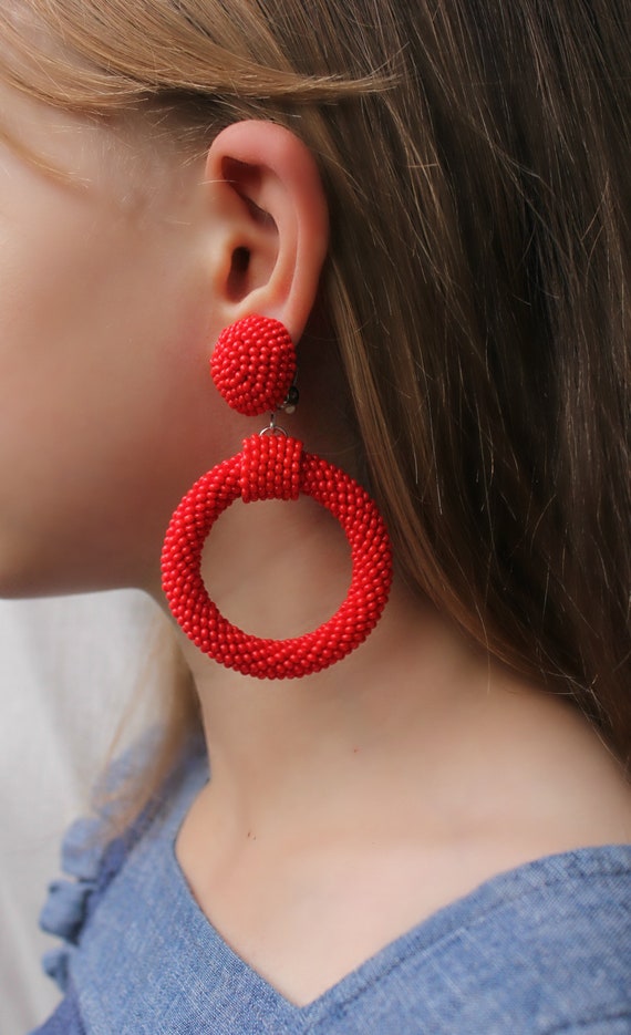 red hoop earrings