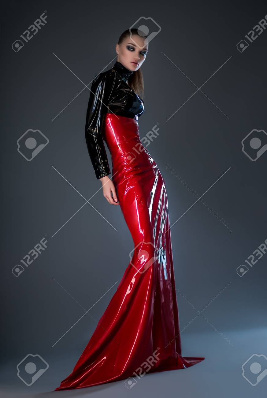red latex dress