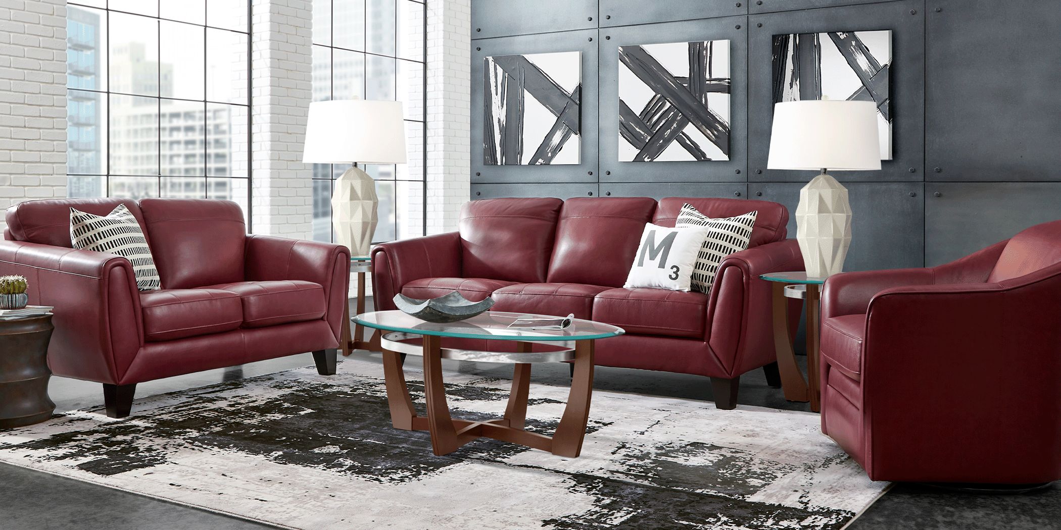 red living room set
