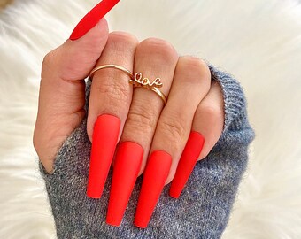 red long nails coffin