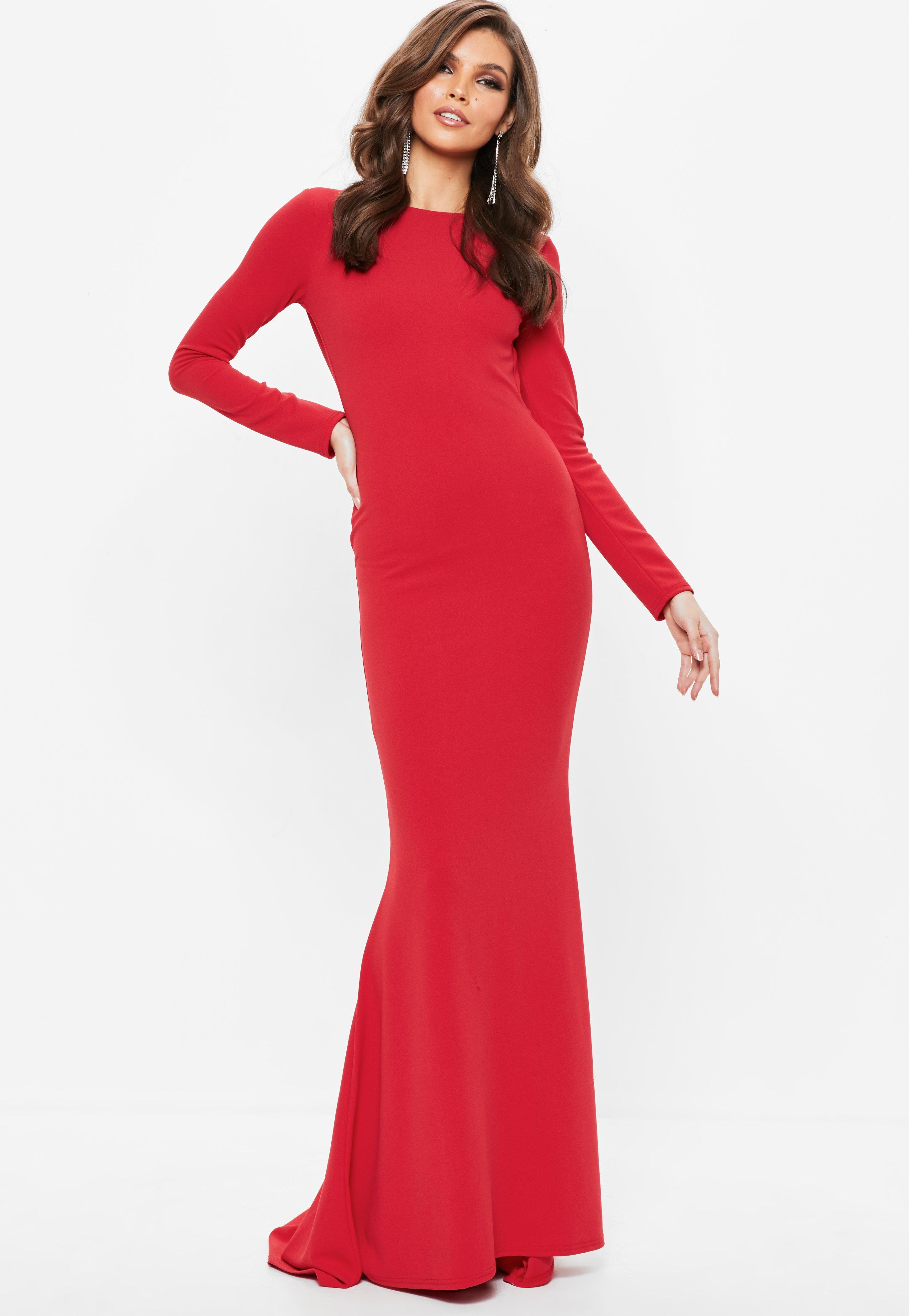 red long sleeve maxi dress