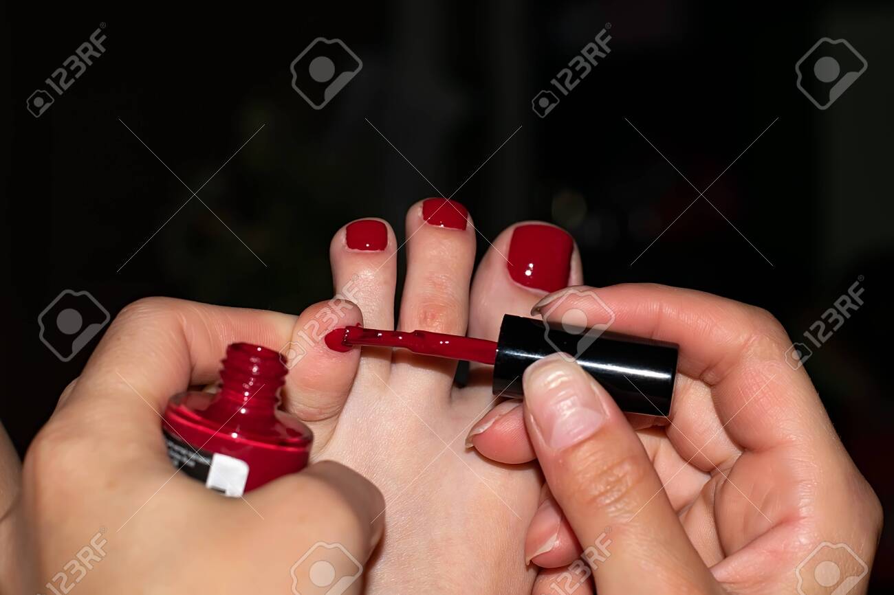 red nail polish toes