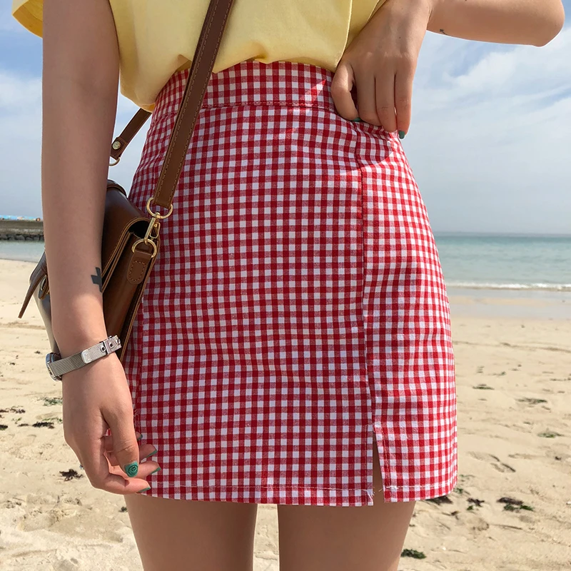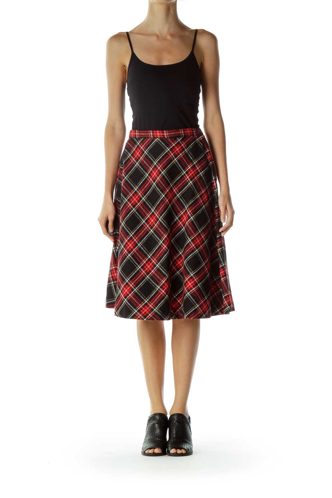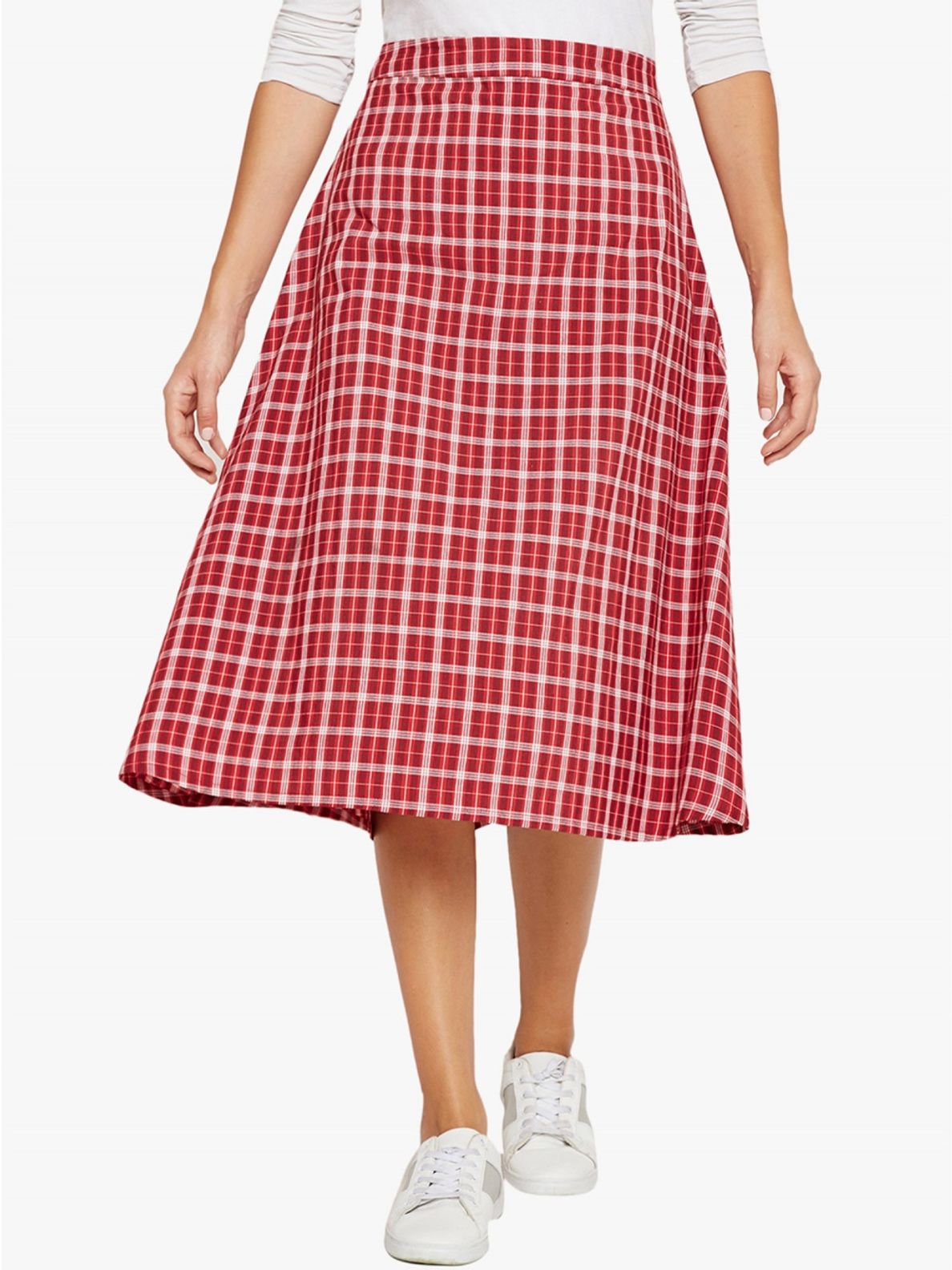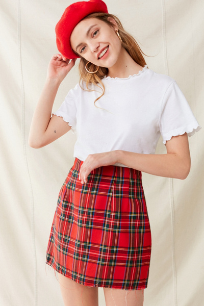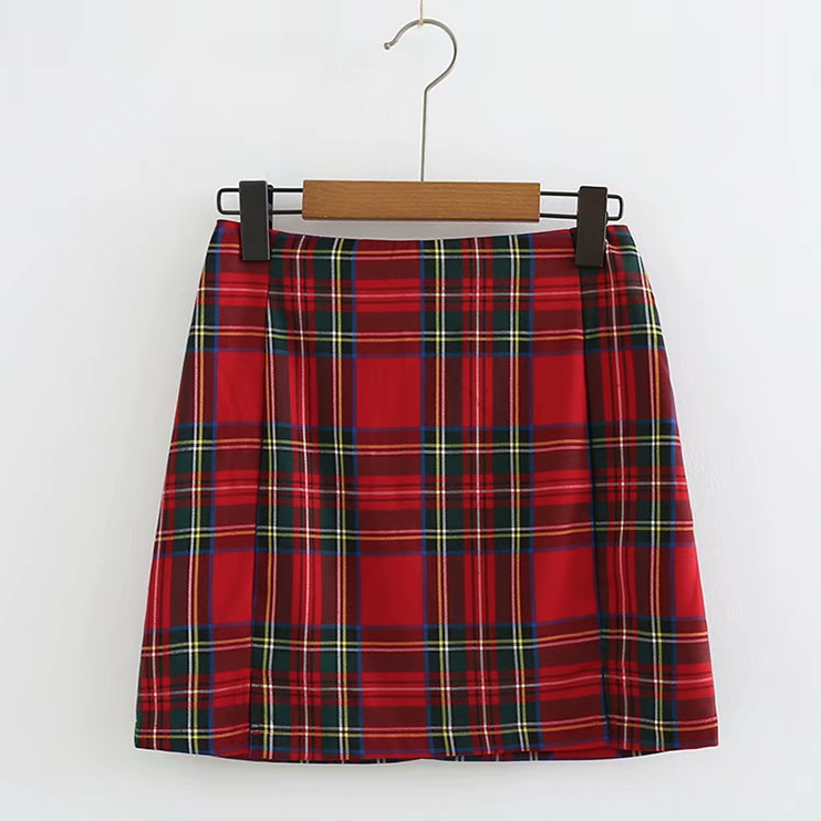red plaid a line skirt