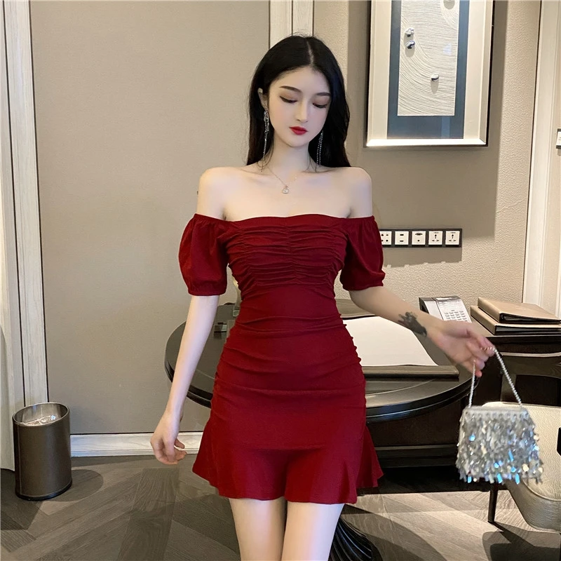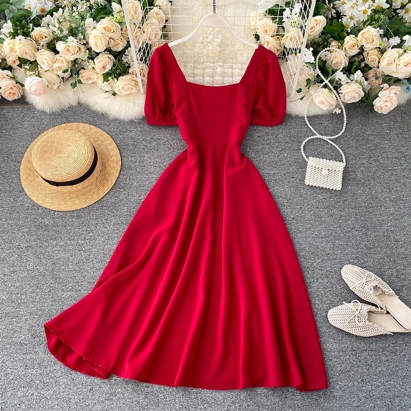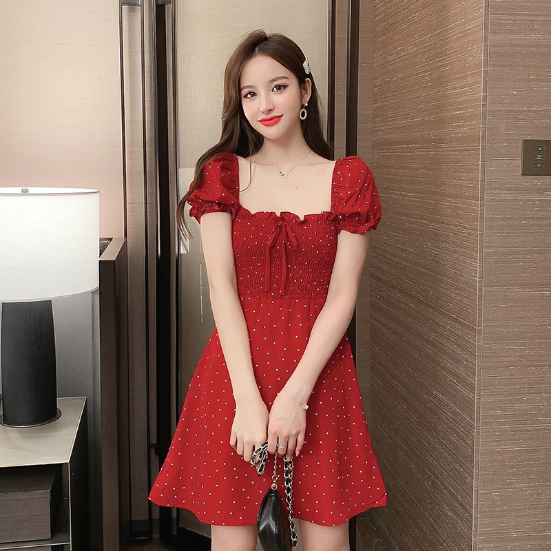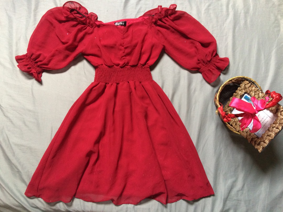 red puff sleeve dress