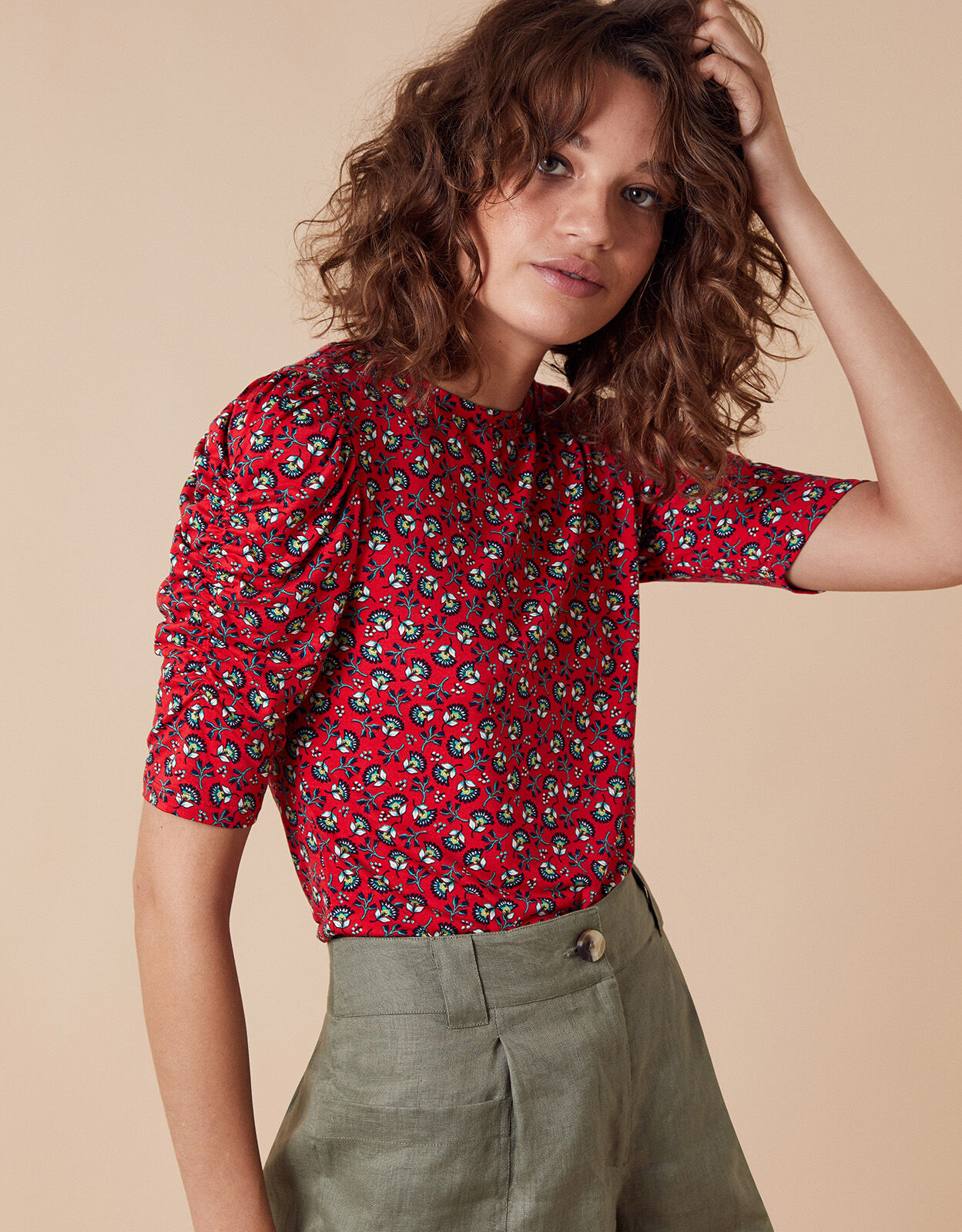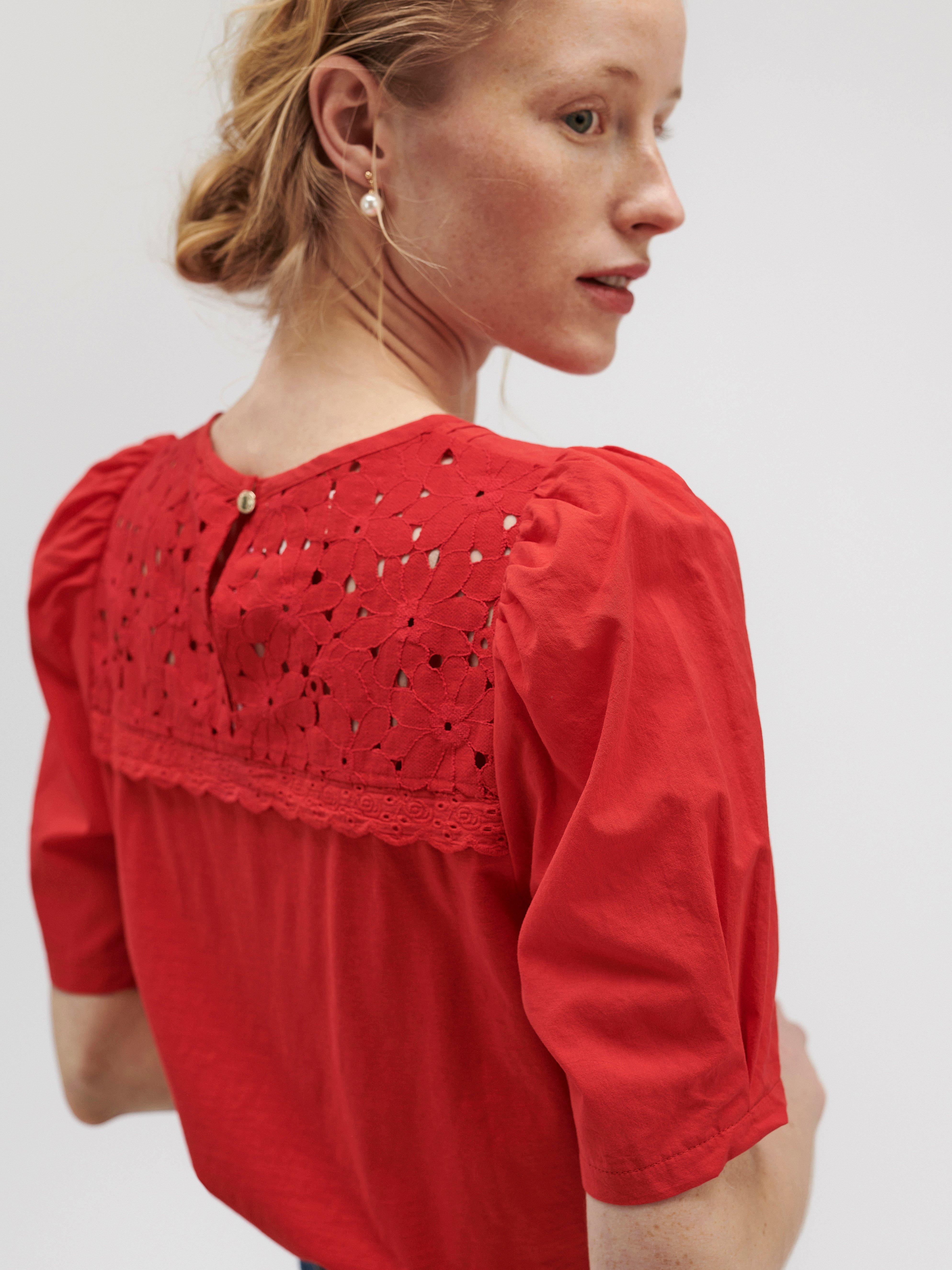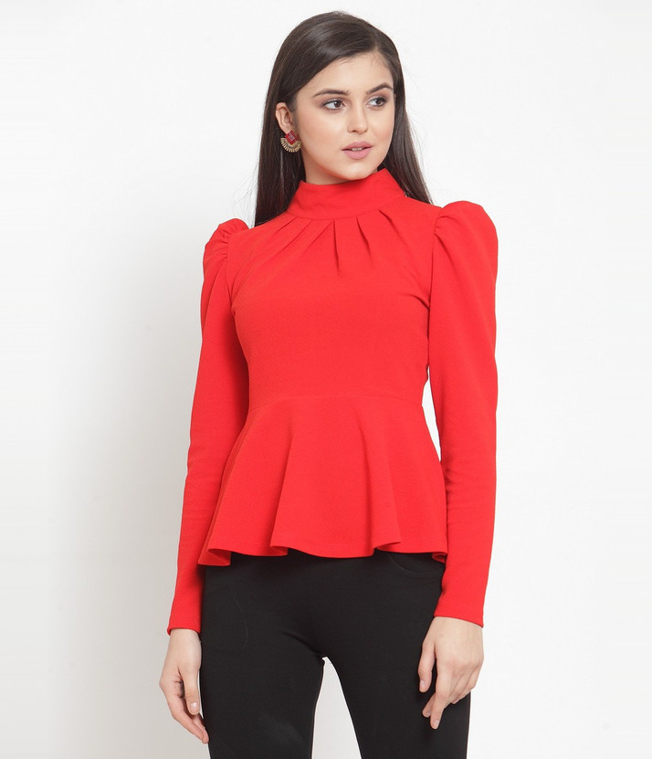 red puff sleeve top