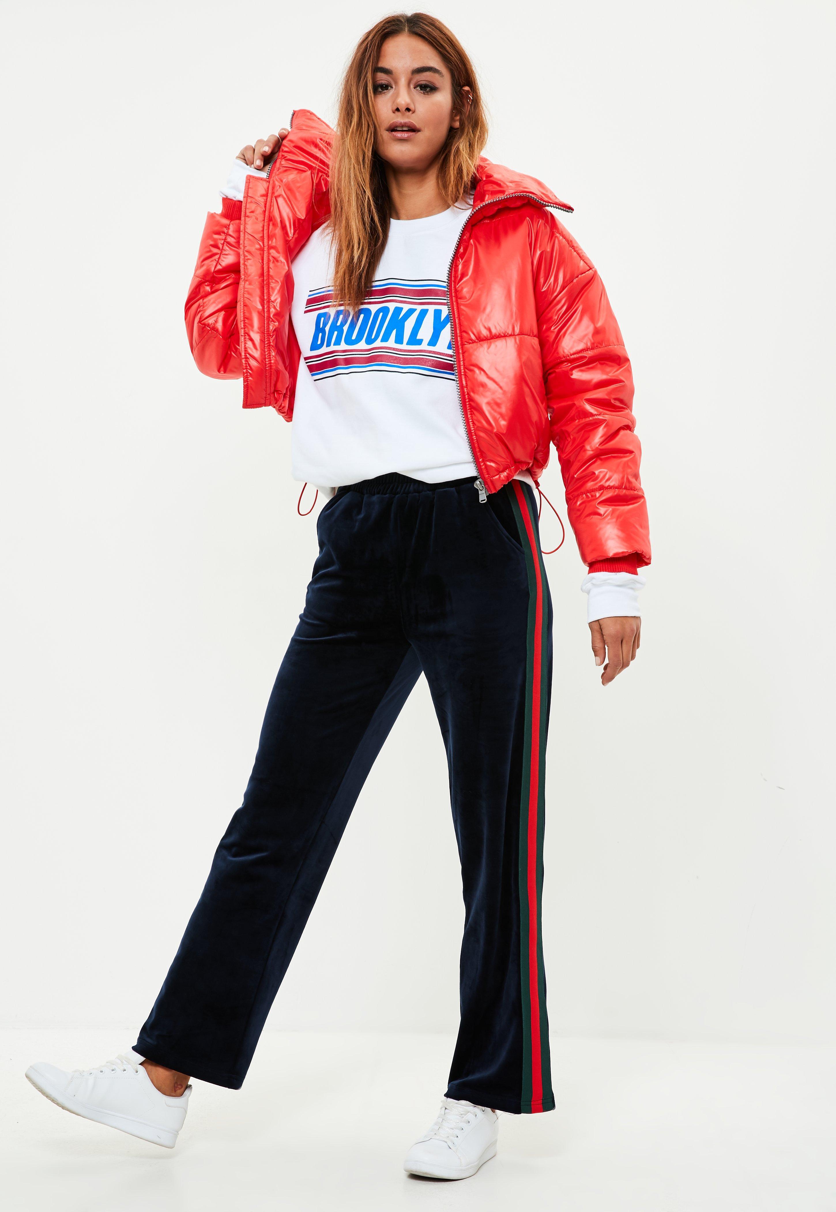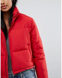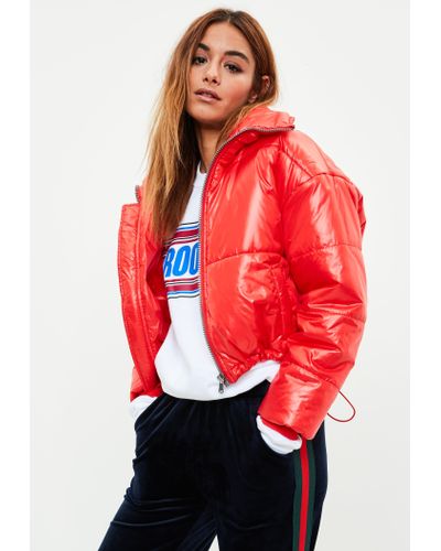 red puffer jacket cropped