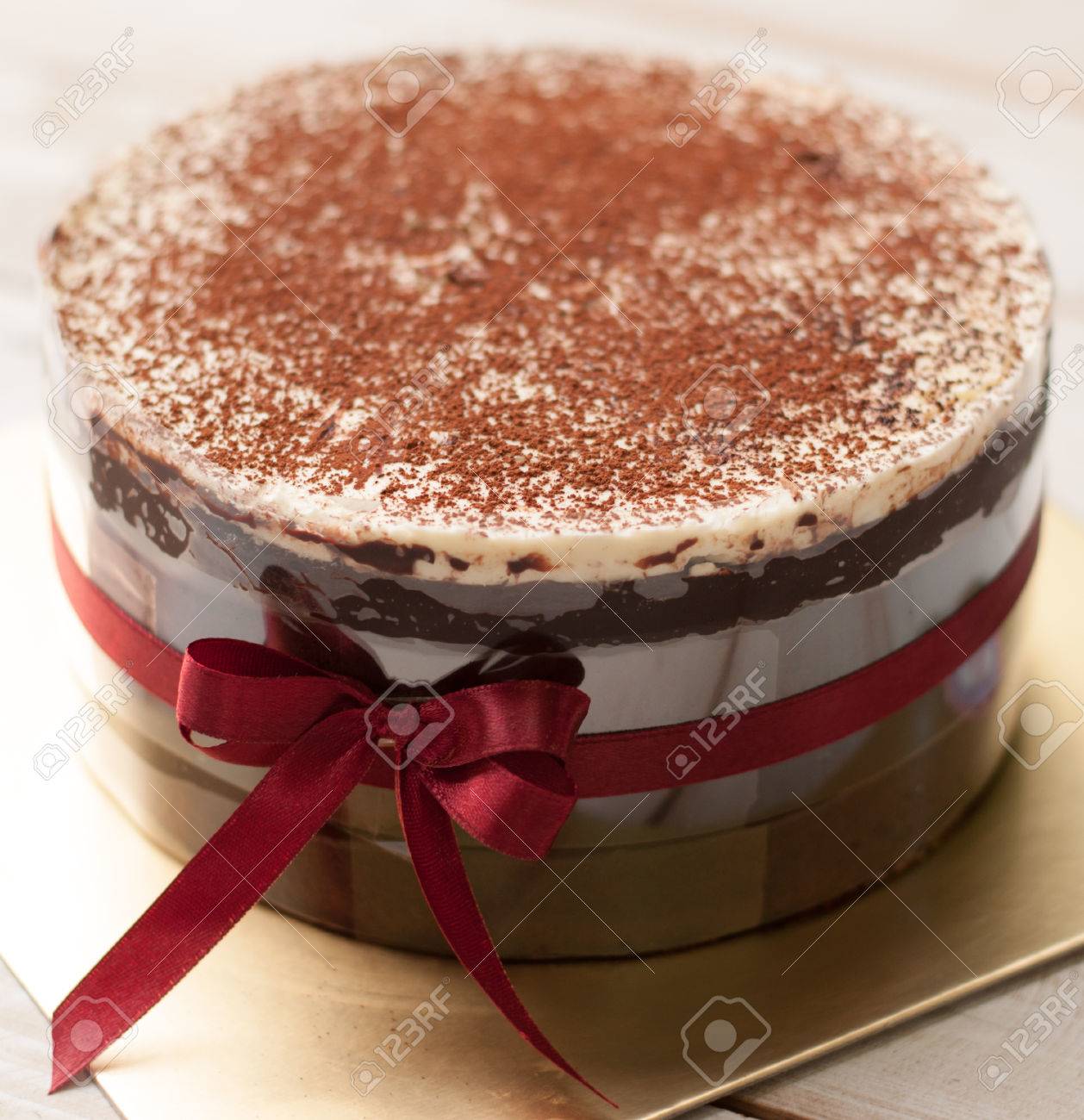 red ribbon chocolate cake