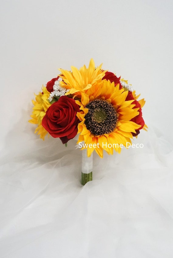 red roses and sunflower bouquet