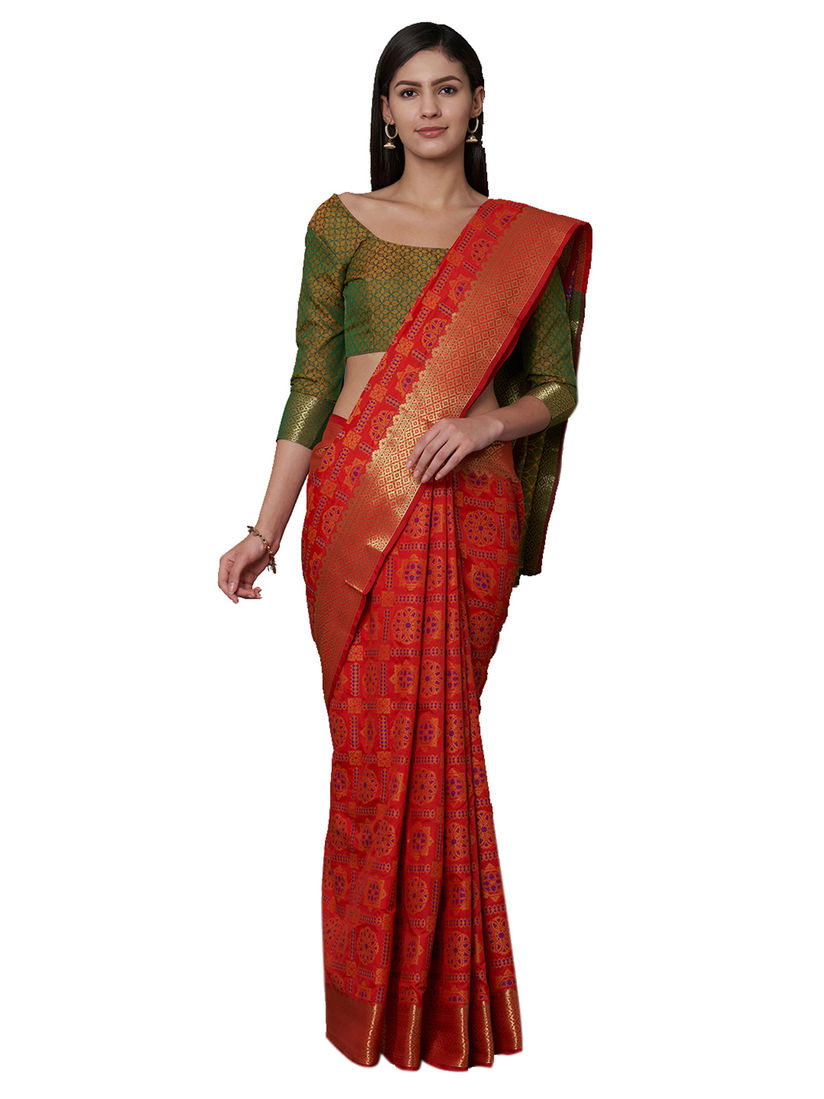 red saree blouse