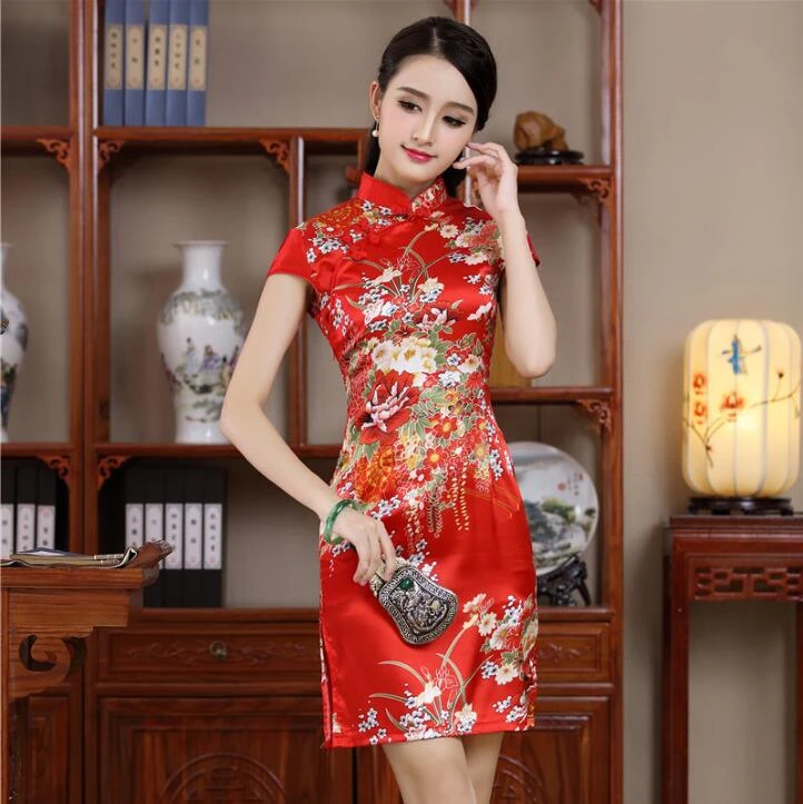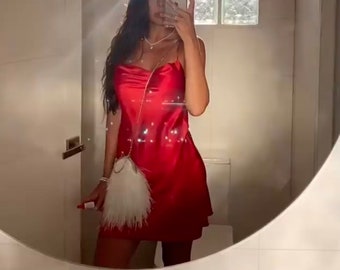 red silk short dress