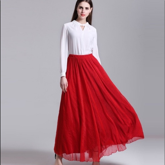 red skirt long