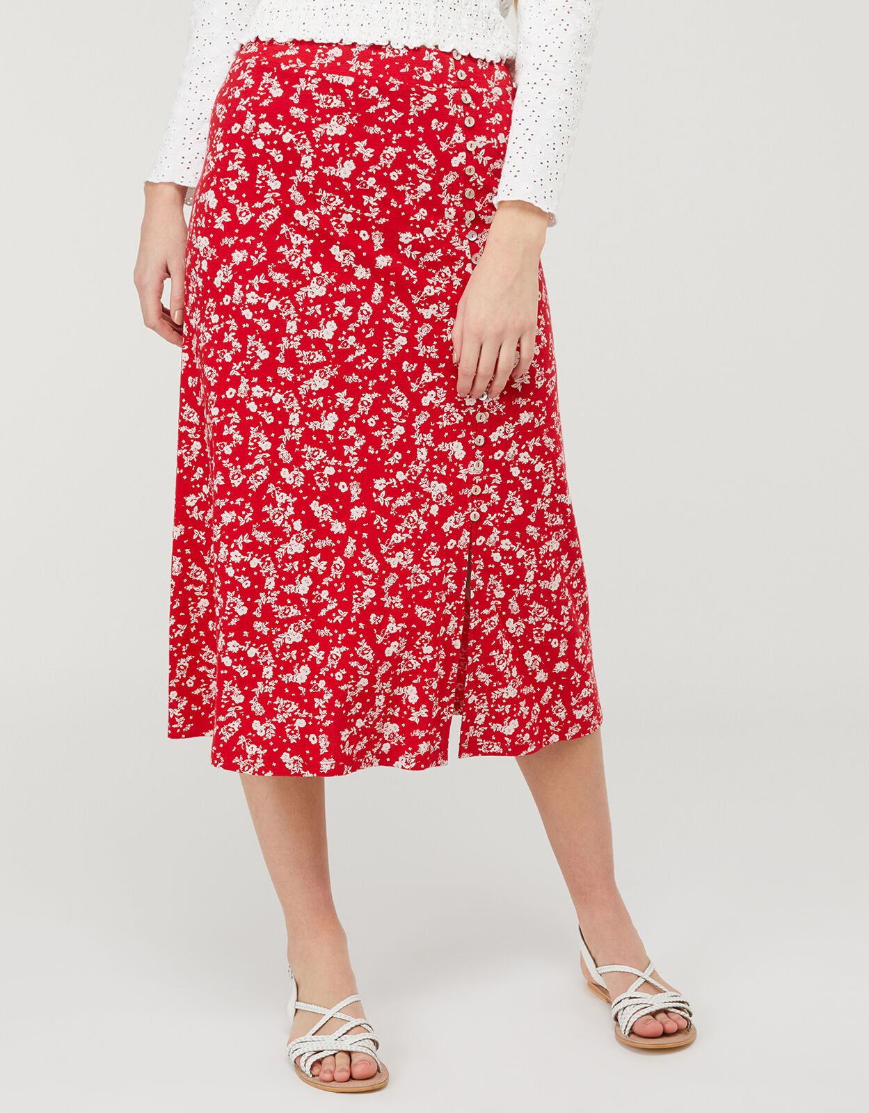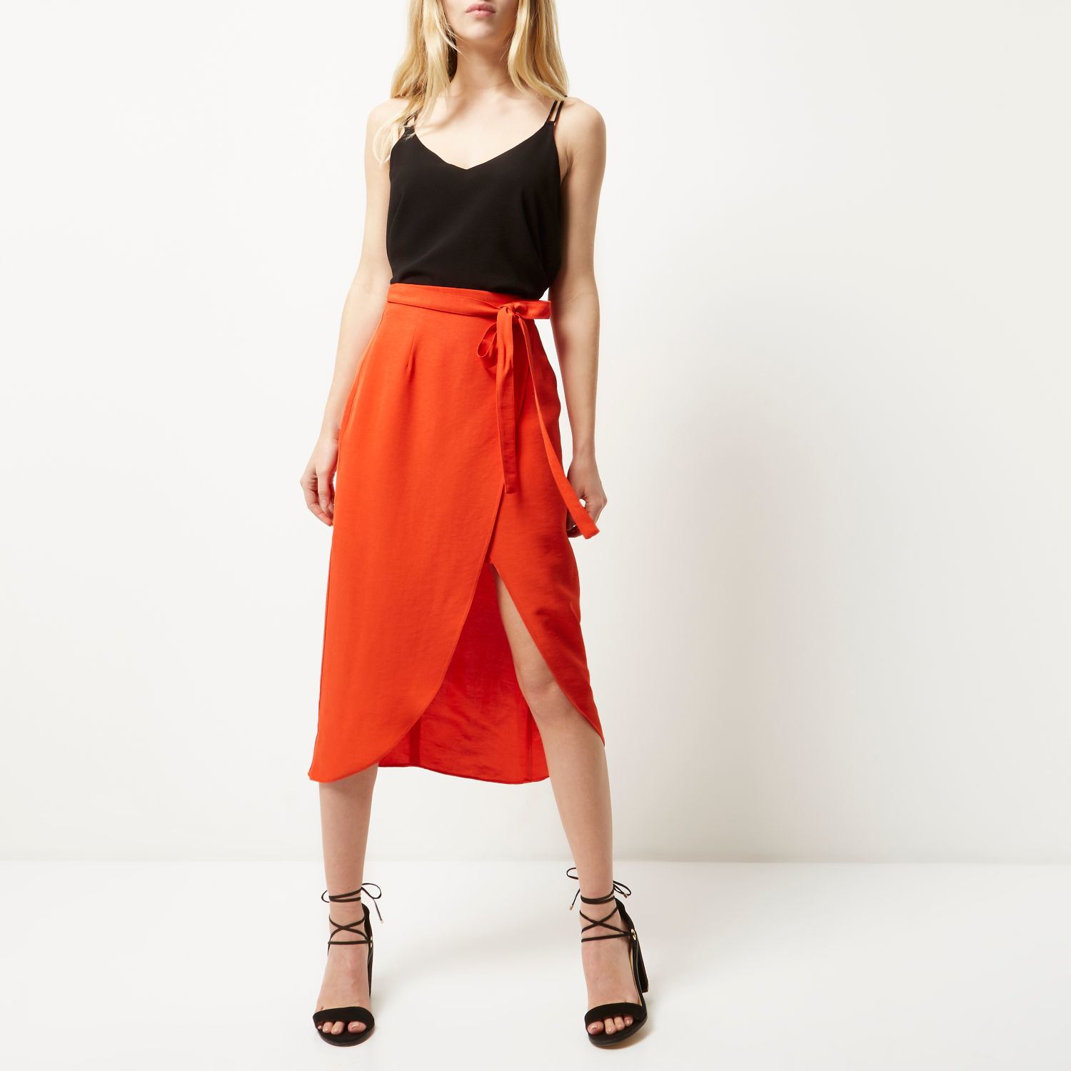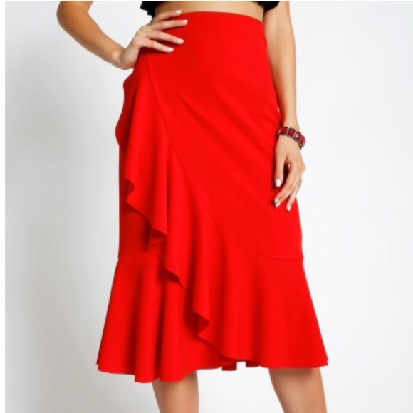 red skirt midi