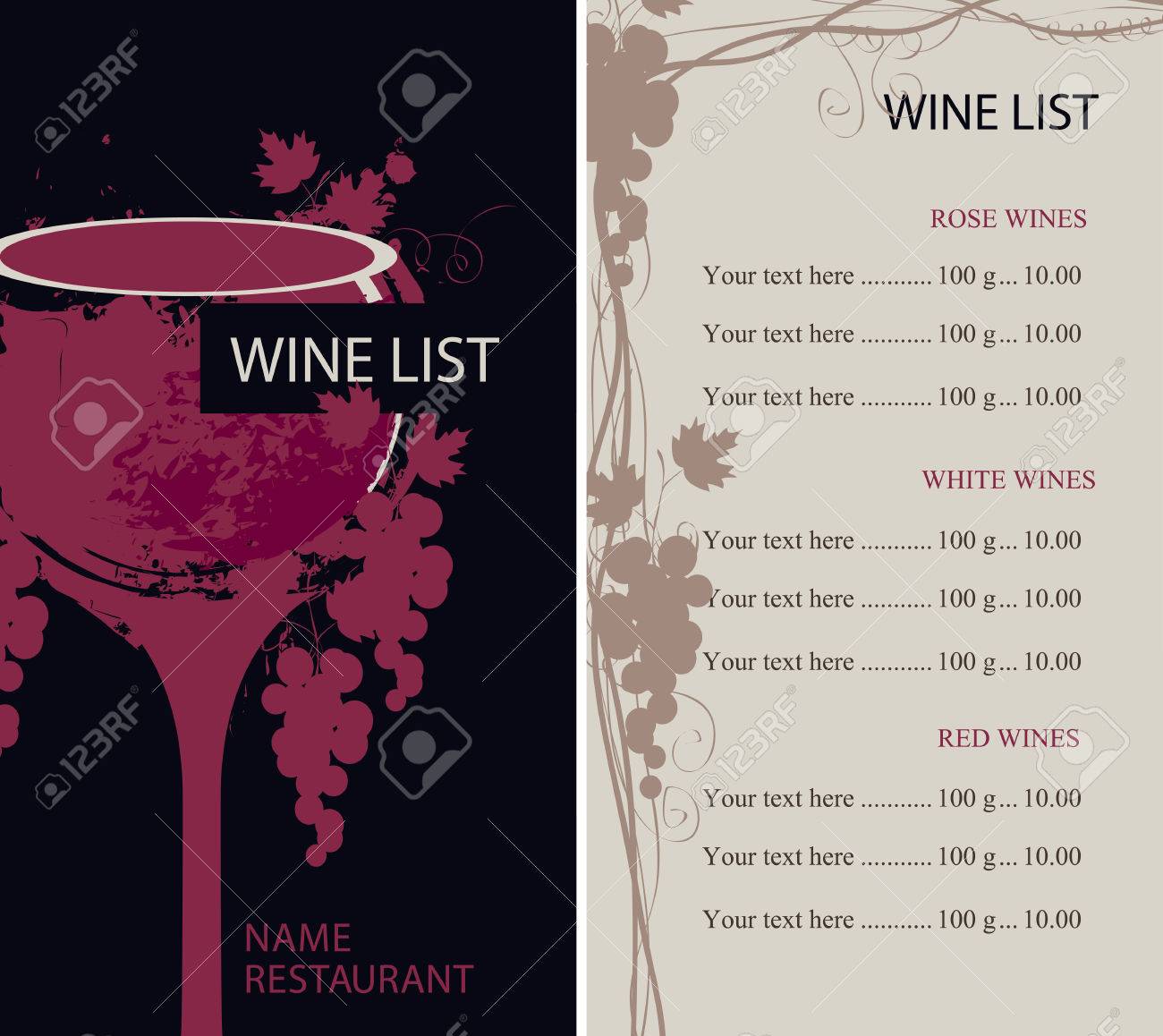 red wine list with price