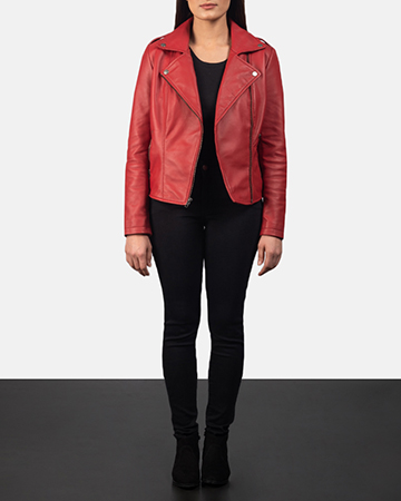 red women leather jacket
