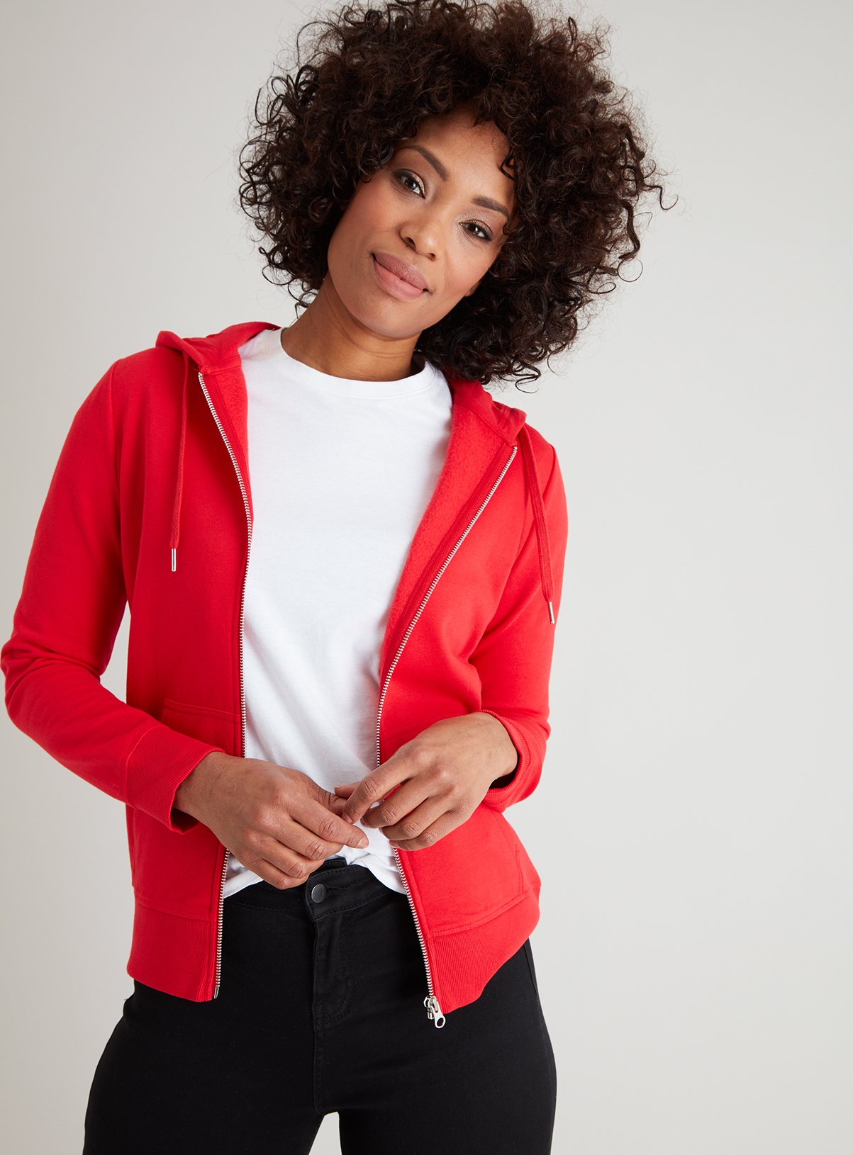red zip up hoodie womens