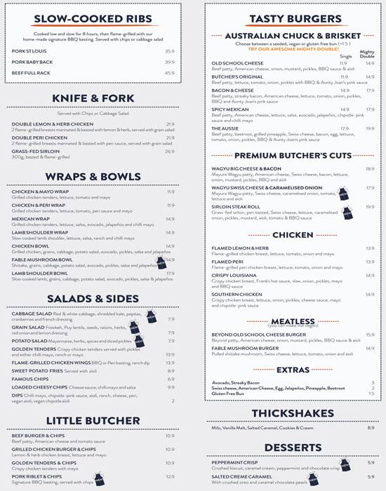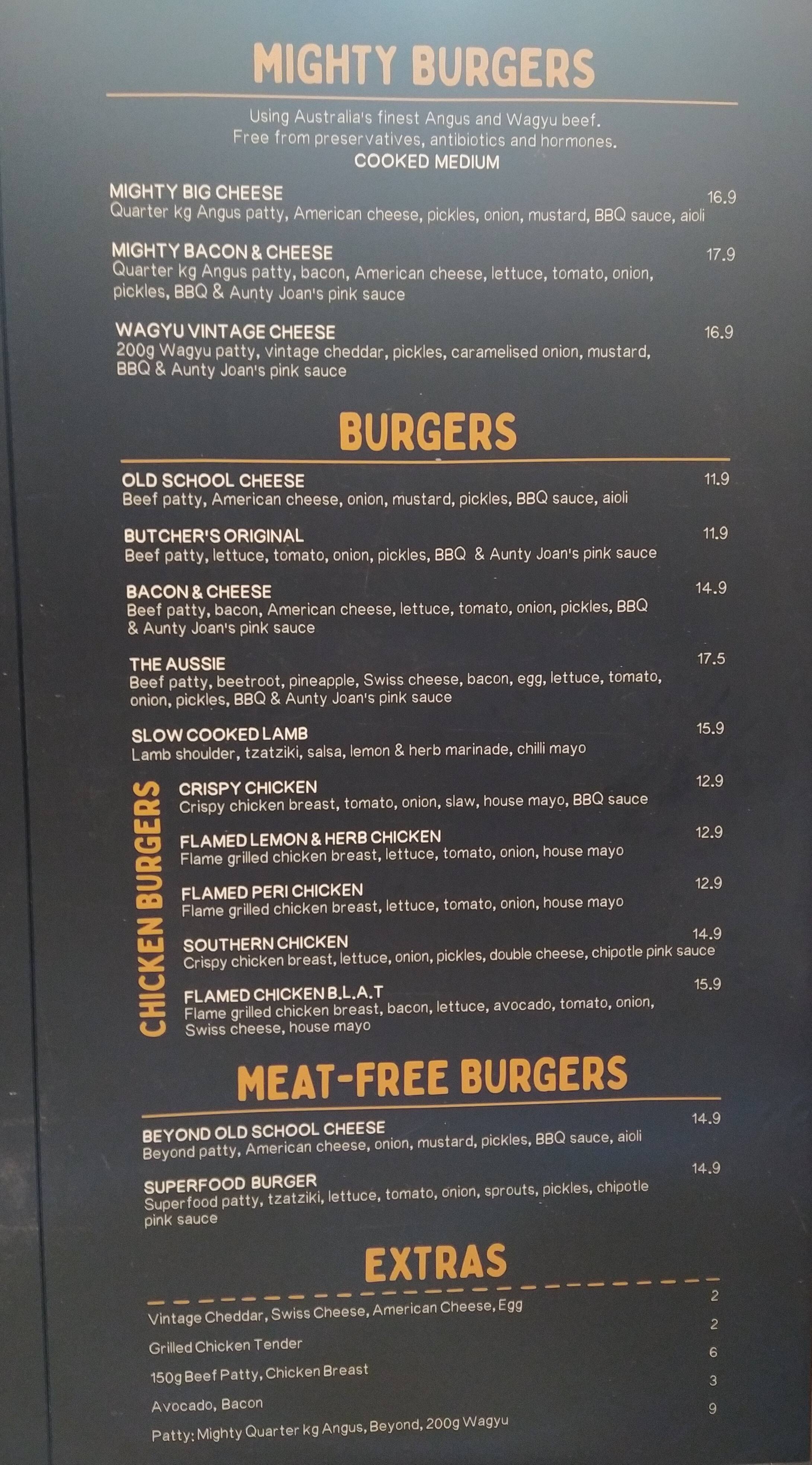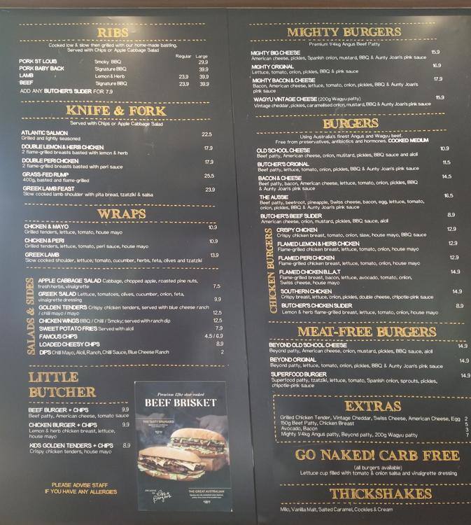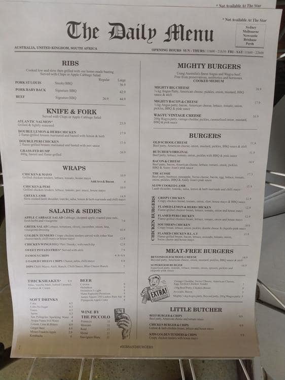 ribs and burgers menu