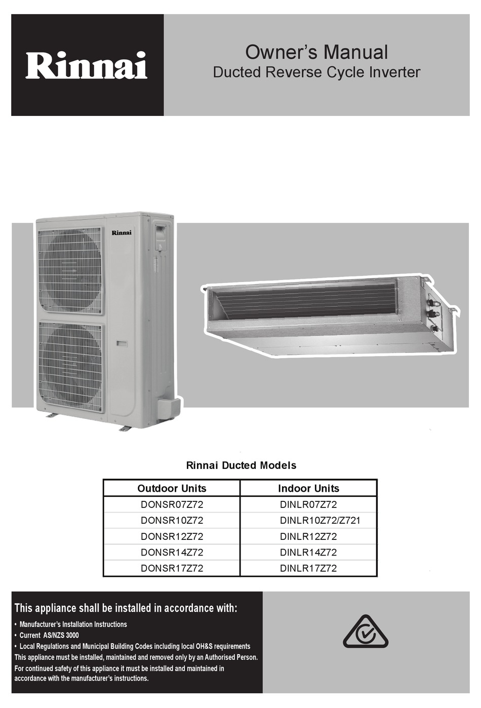 rinnai ducted reverse cycle