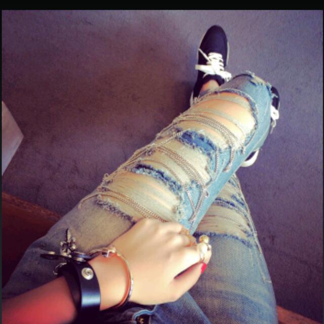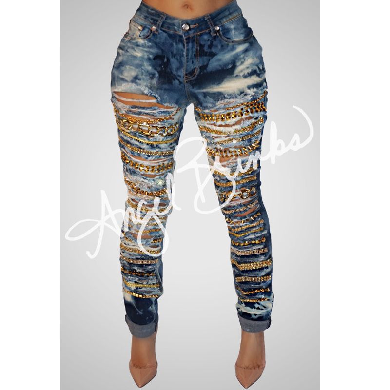 ripped jeans with chains
