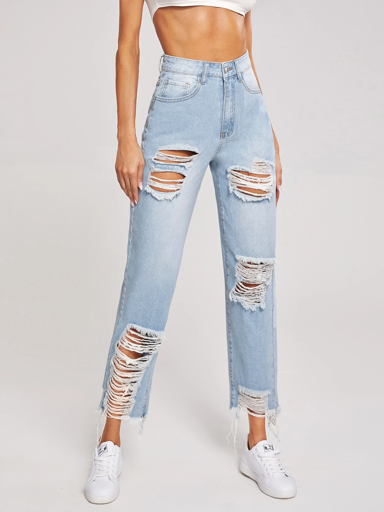 ripped light wash jeans