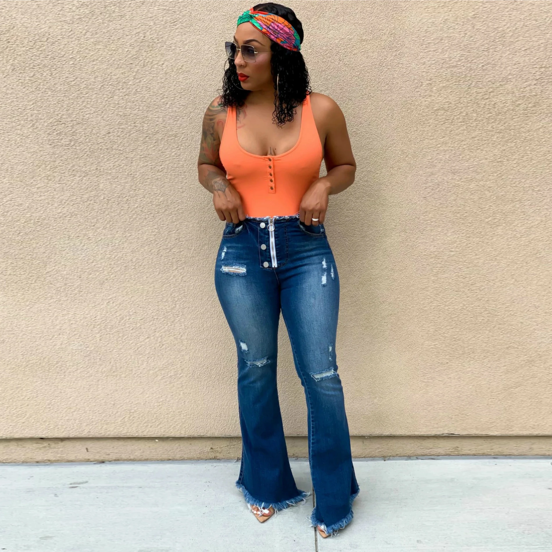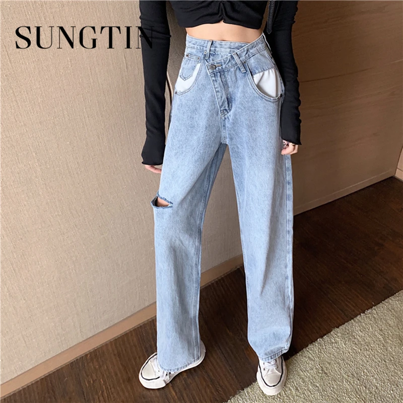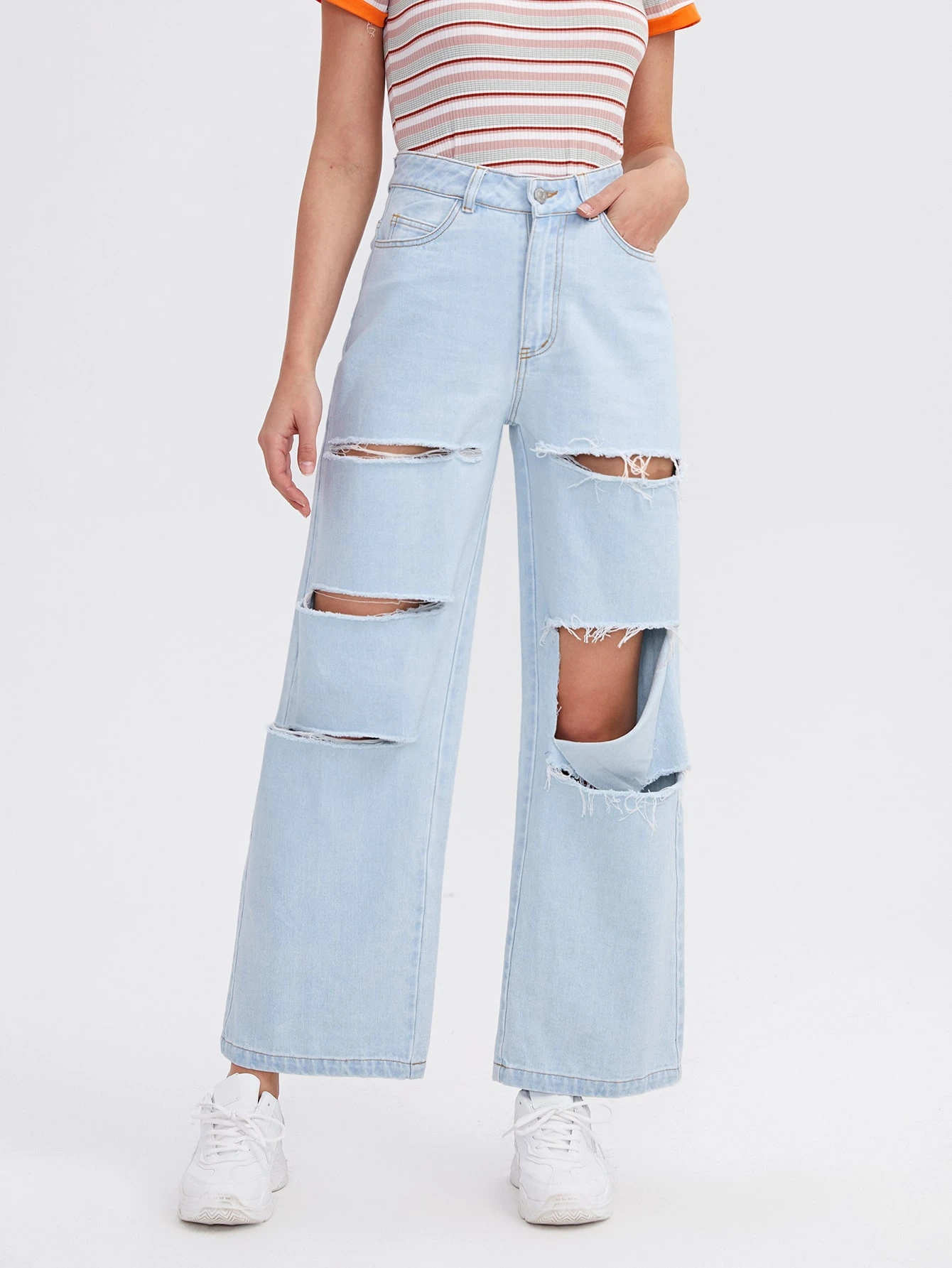 ripped wide leg jeans
