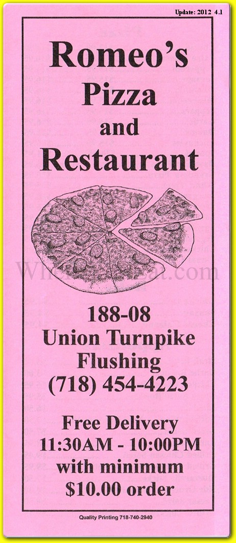 romeo's pizza menu