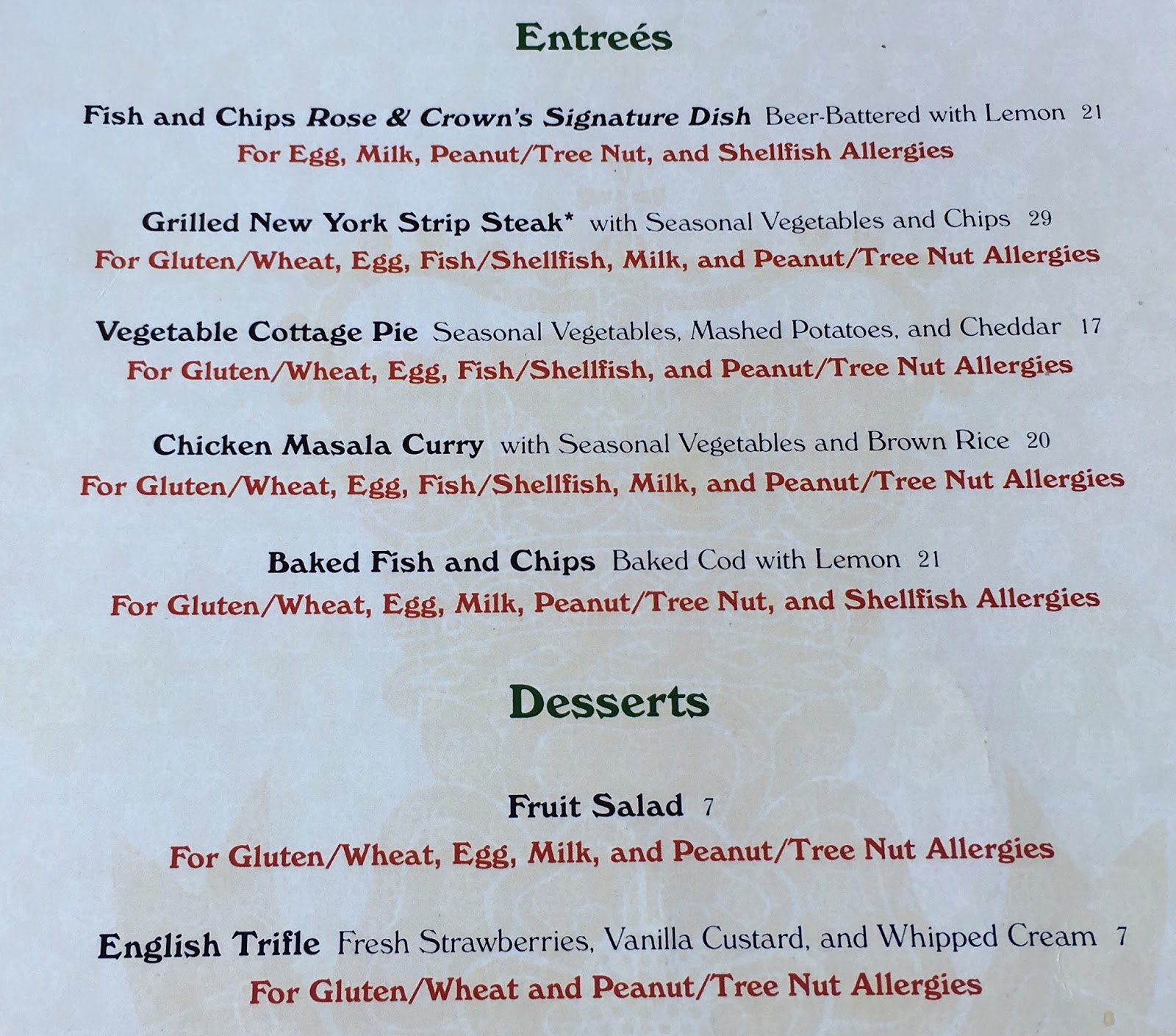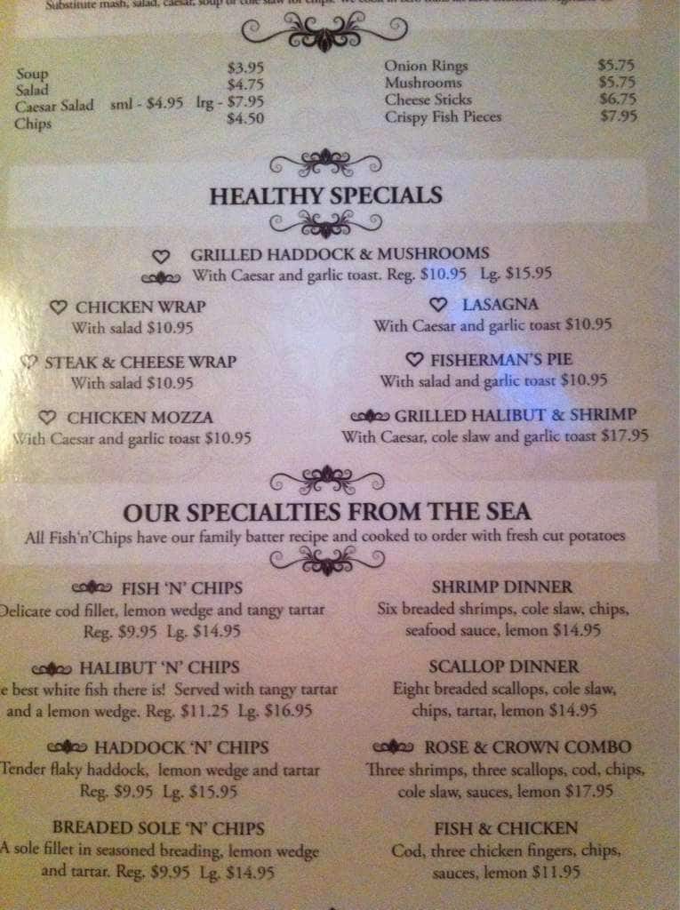 rose and crown menu