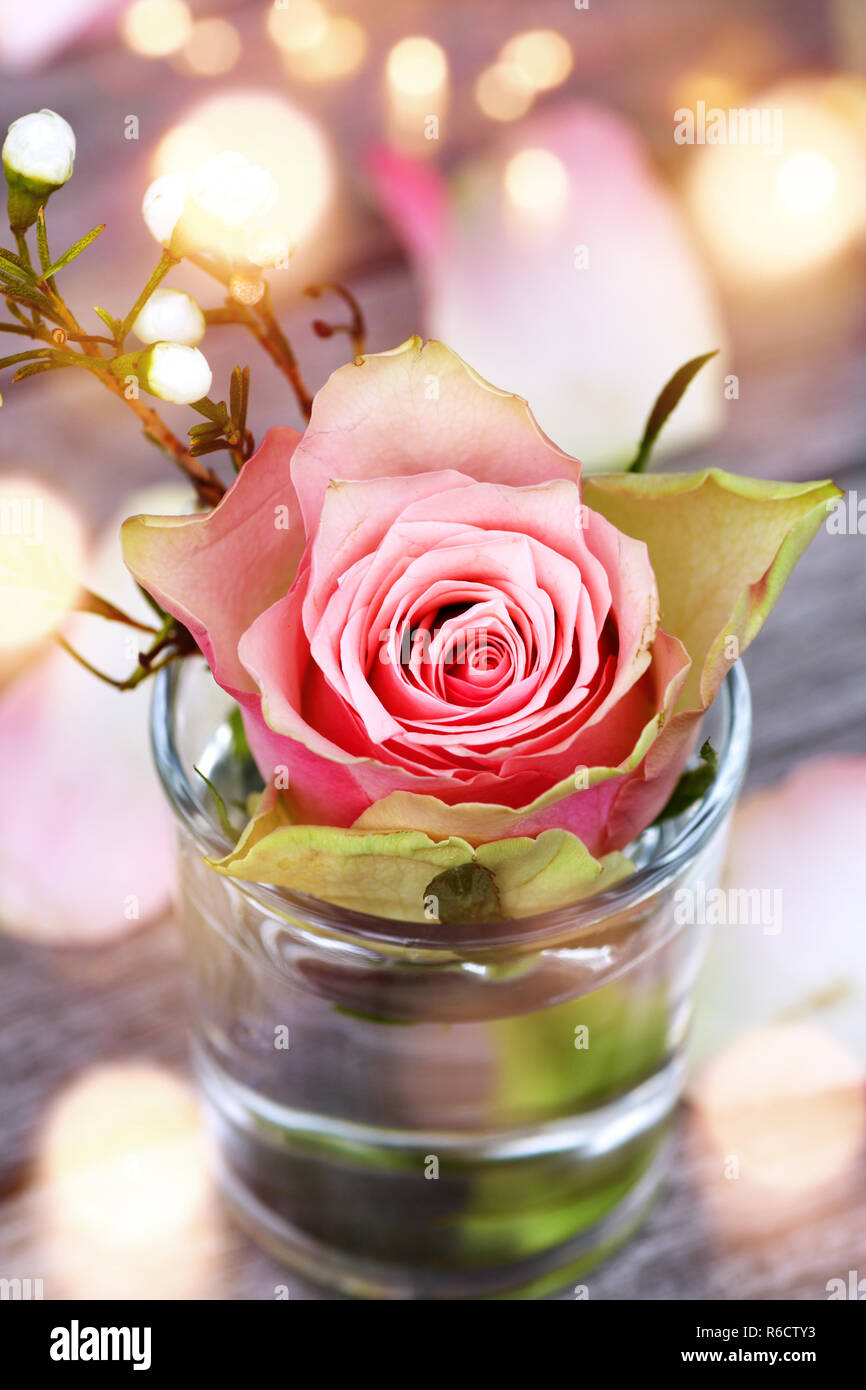 rose in glass