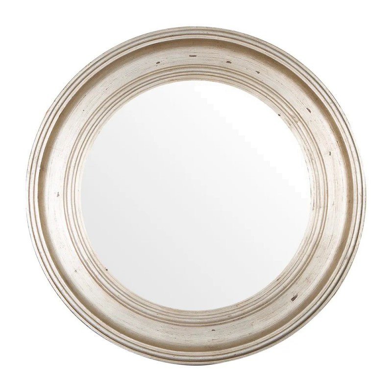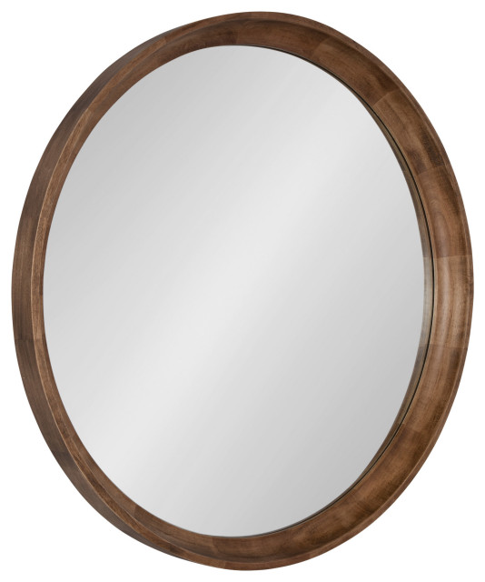 round wood framed mirror
