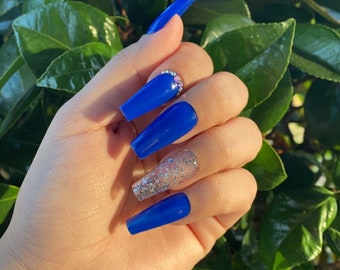 royal blue coffin nails with glitter