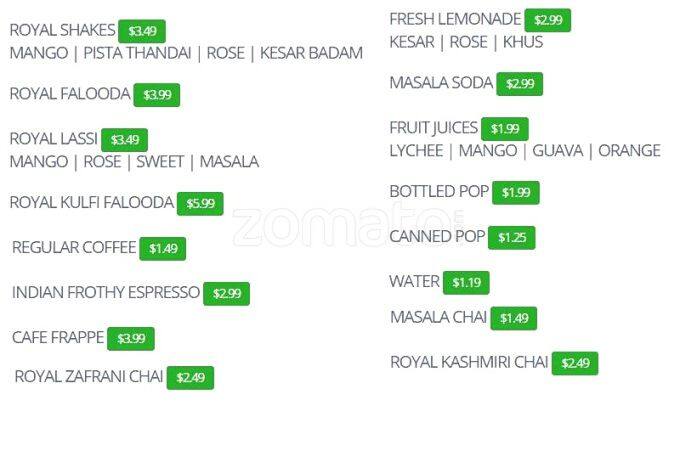 royal paan menu