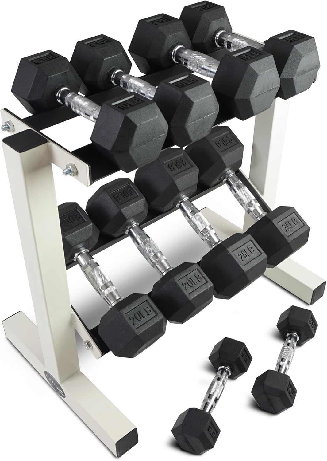 rubber coated hex dumbbell weights training set 5 10 15 20 25 lb titan fitness