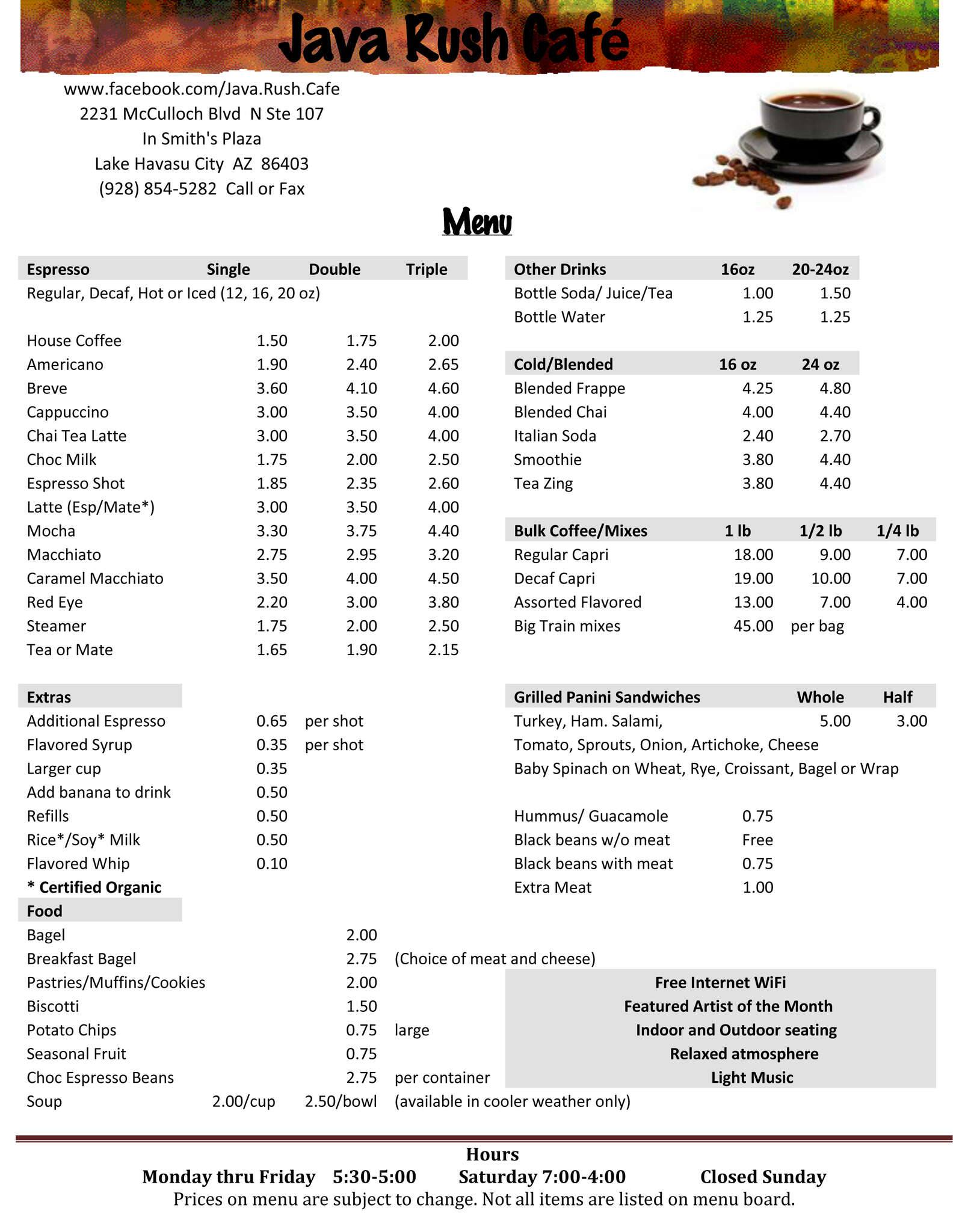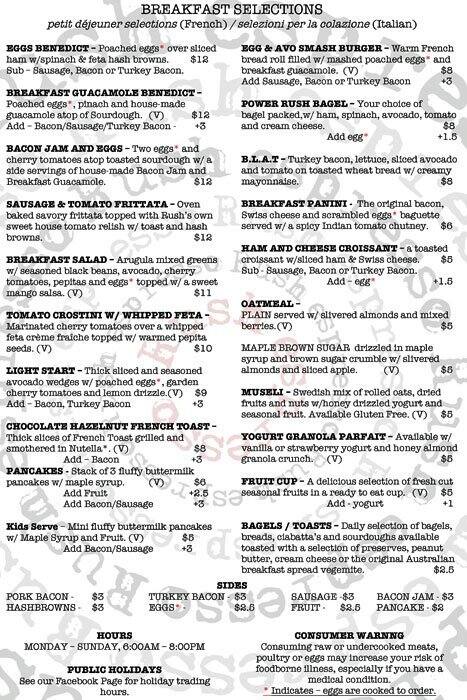 rush's menu
