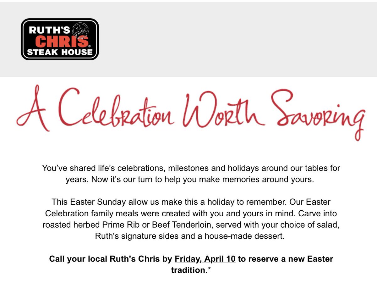 ruth's chris $39.95 for a 3 course meal