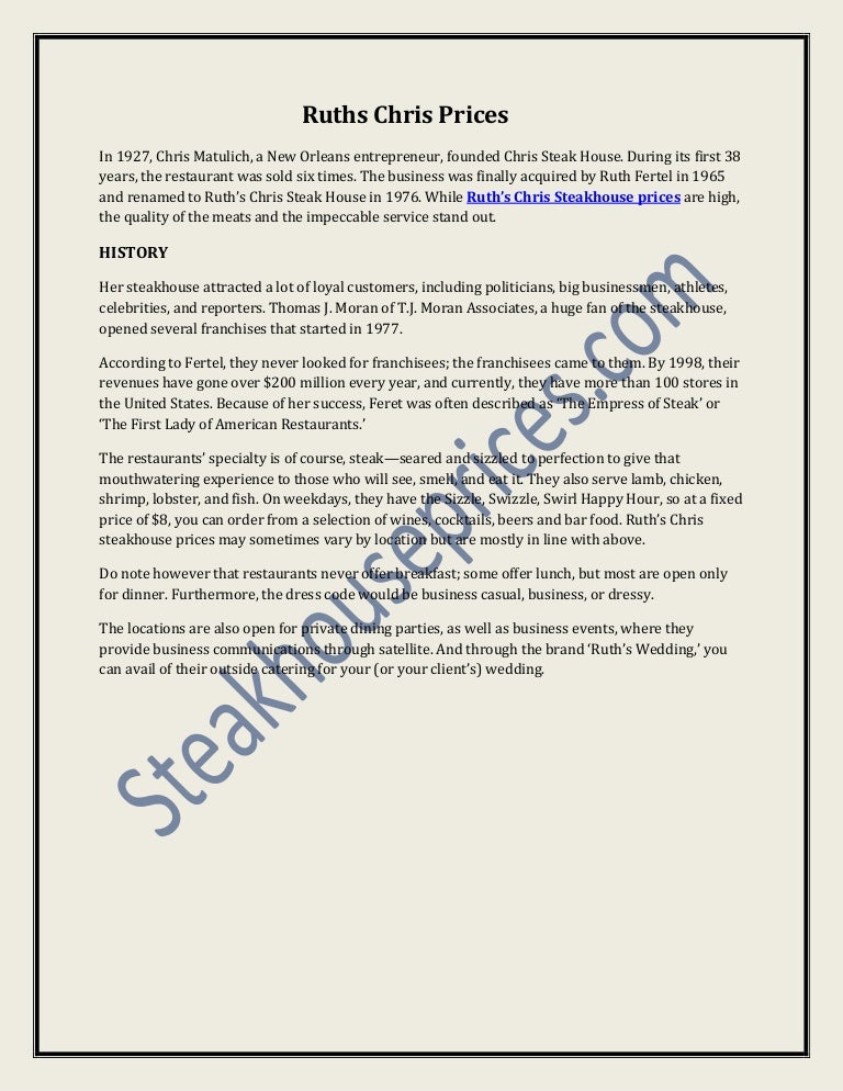 ruth chris steakhouse prices