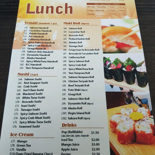 sakana sushi menu