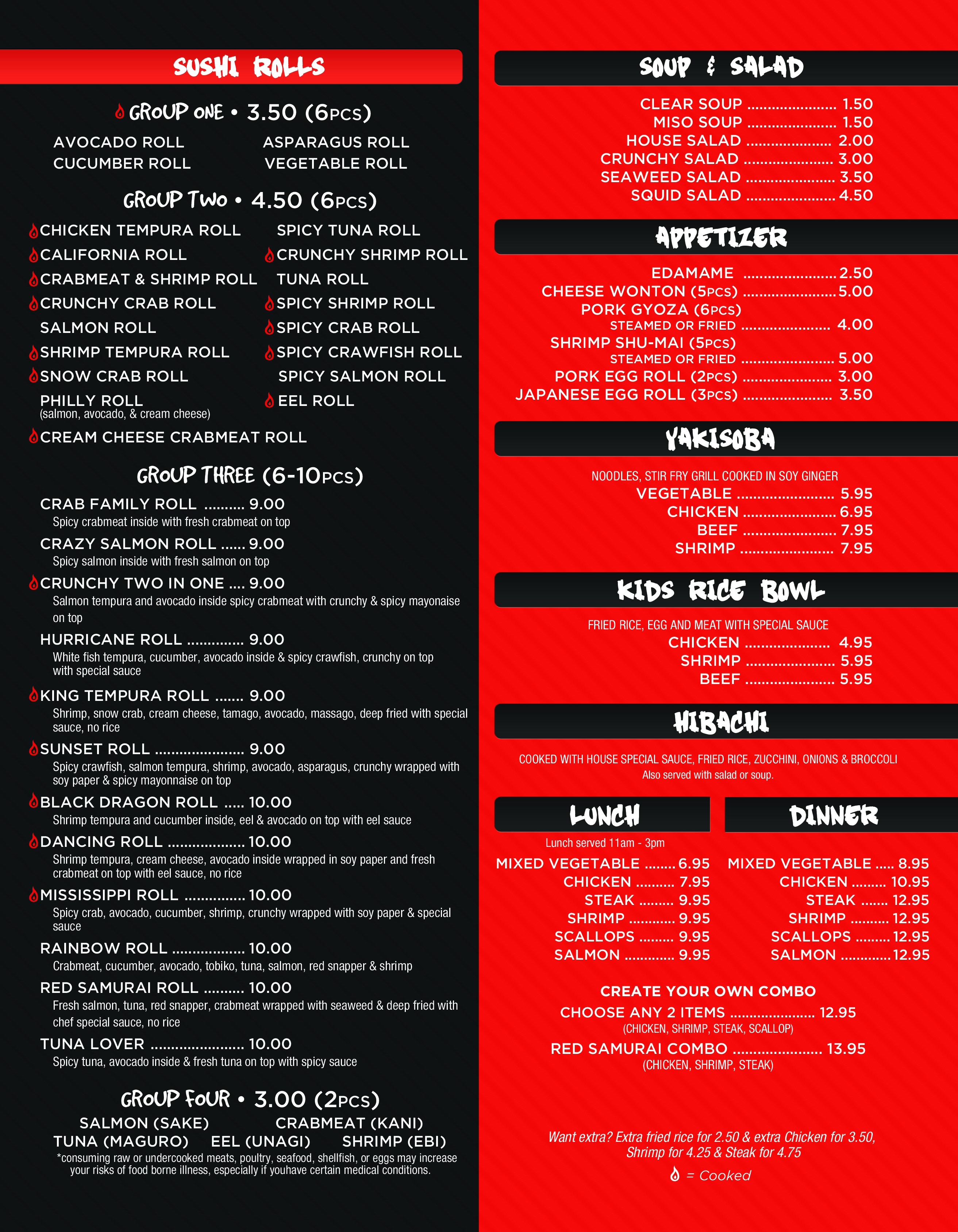samurai menu