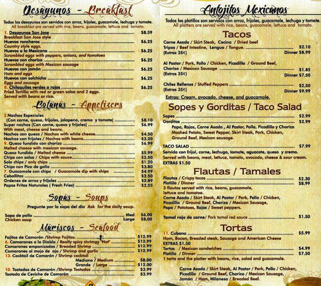 san jose menu