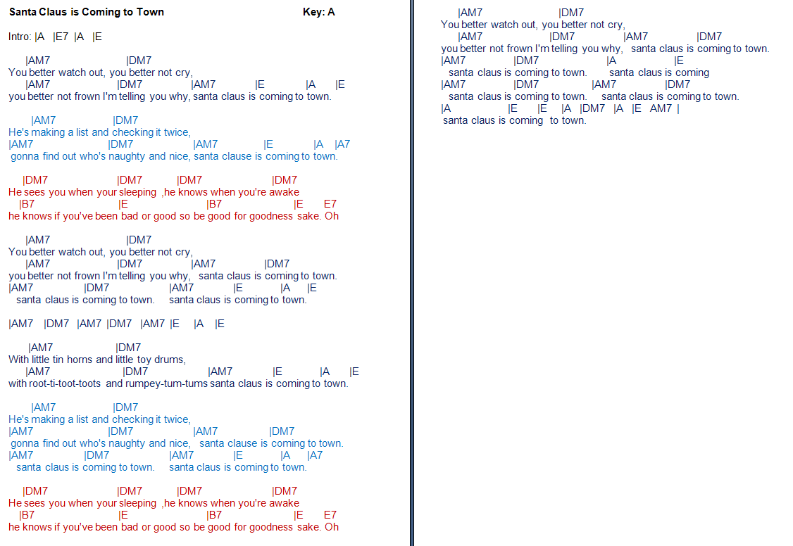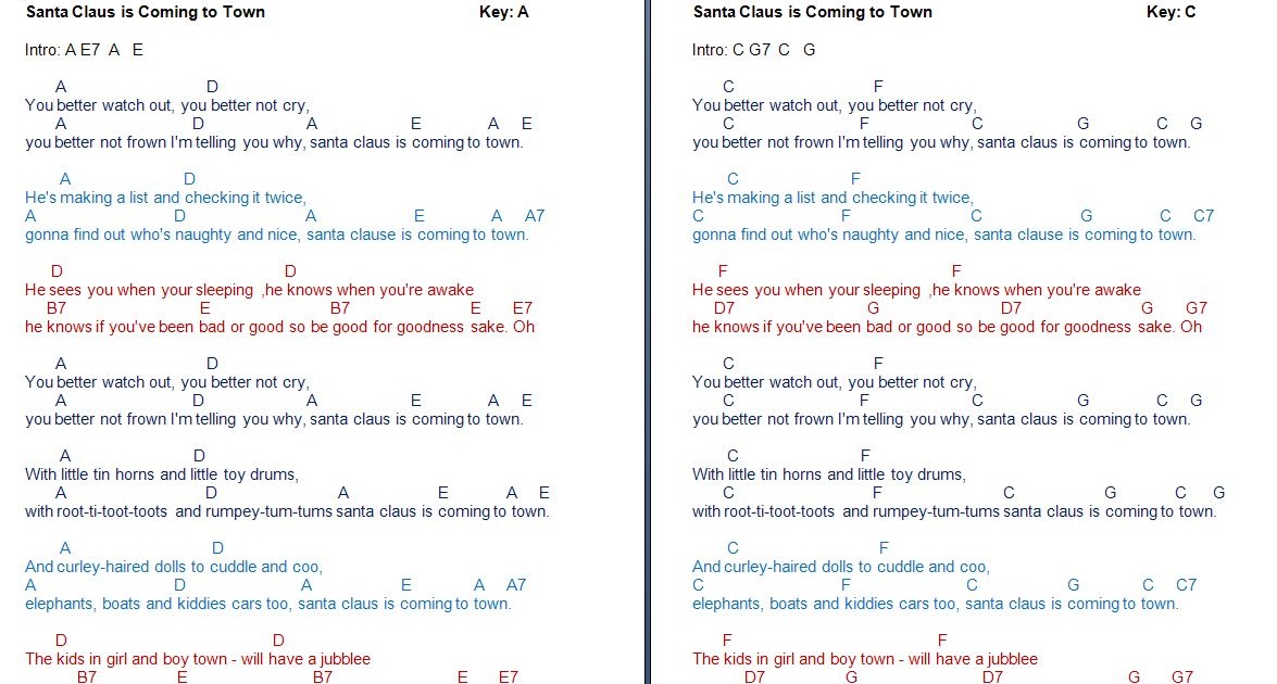 santa claus coming to town chords