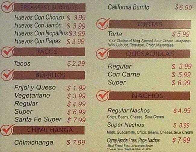 santa fe menu