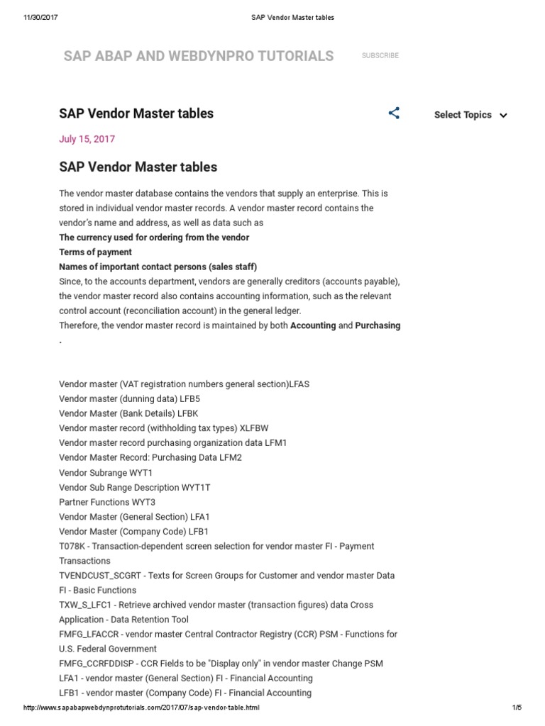 sap vendor tables
