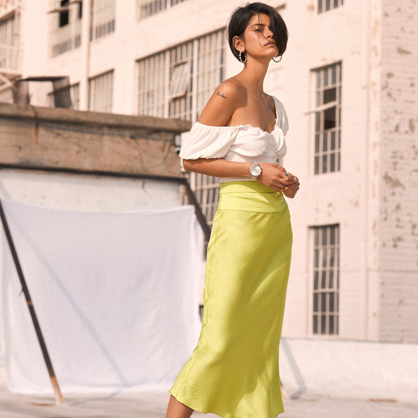 satin skirt outfit