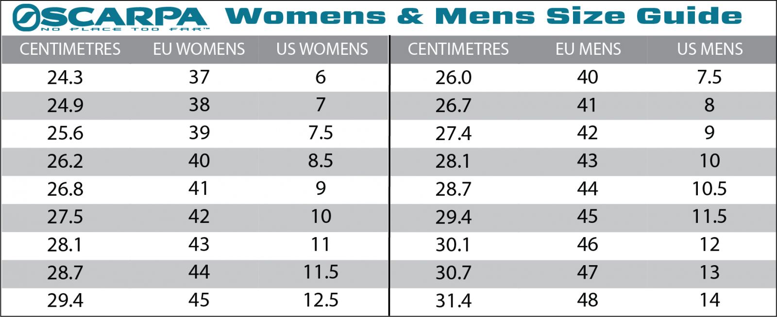 scarpa size chart