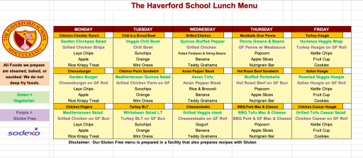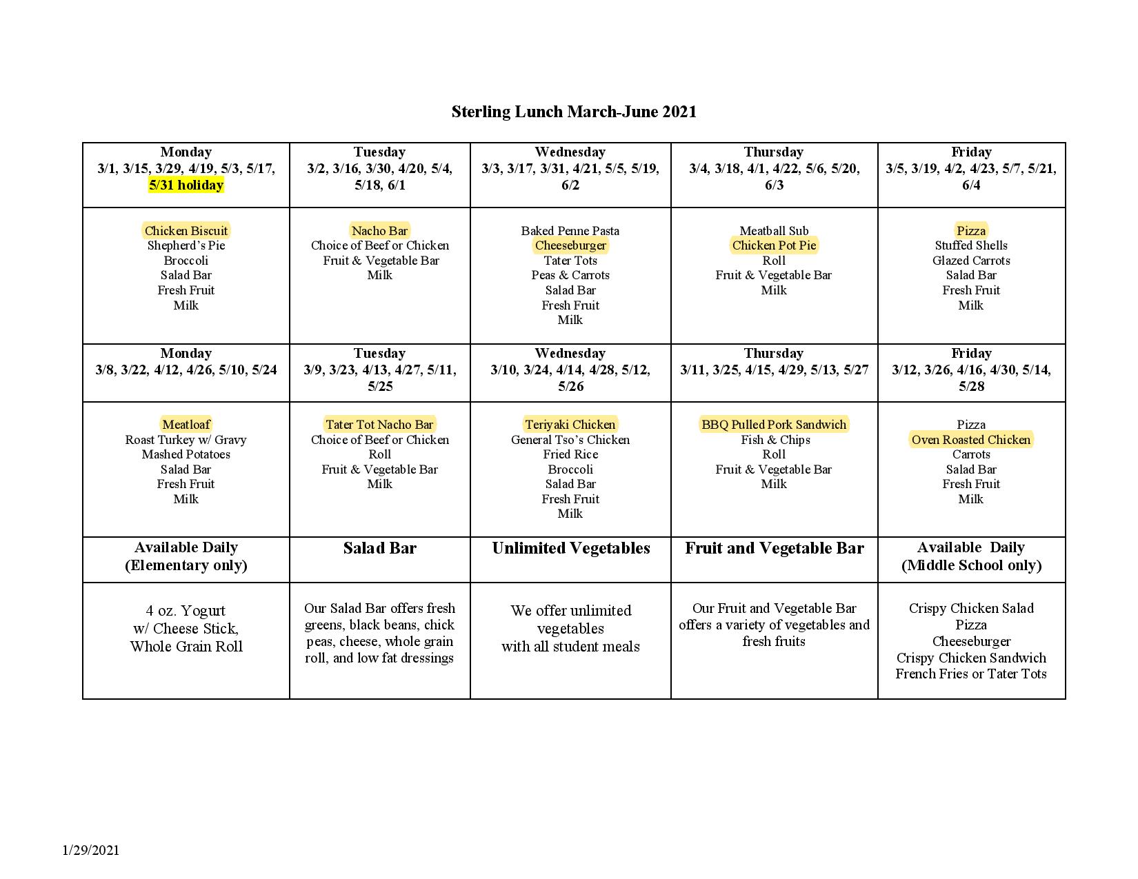 school menu lunch