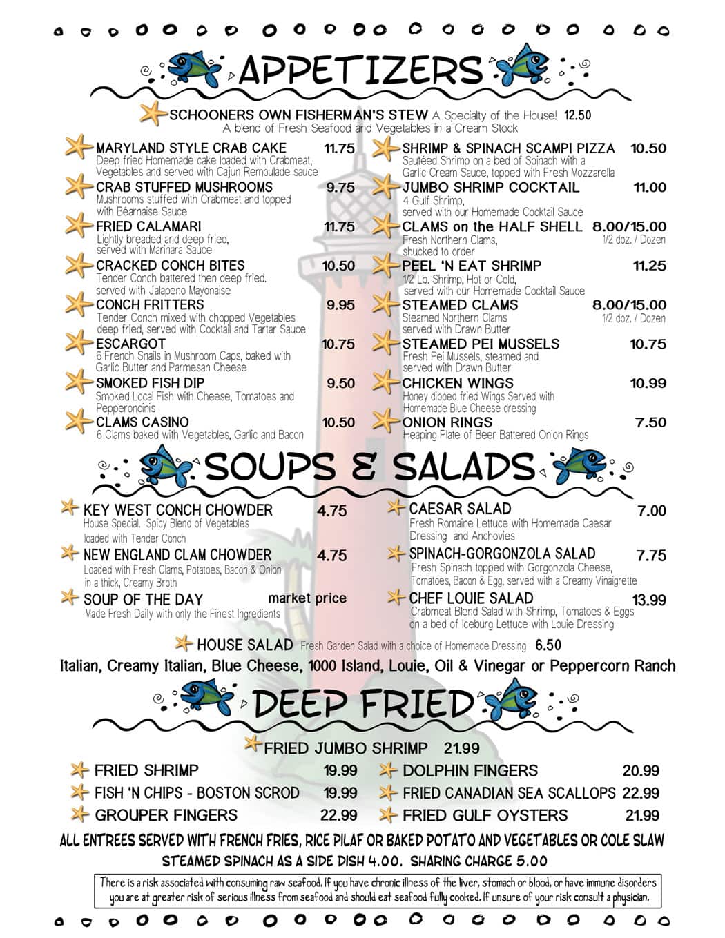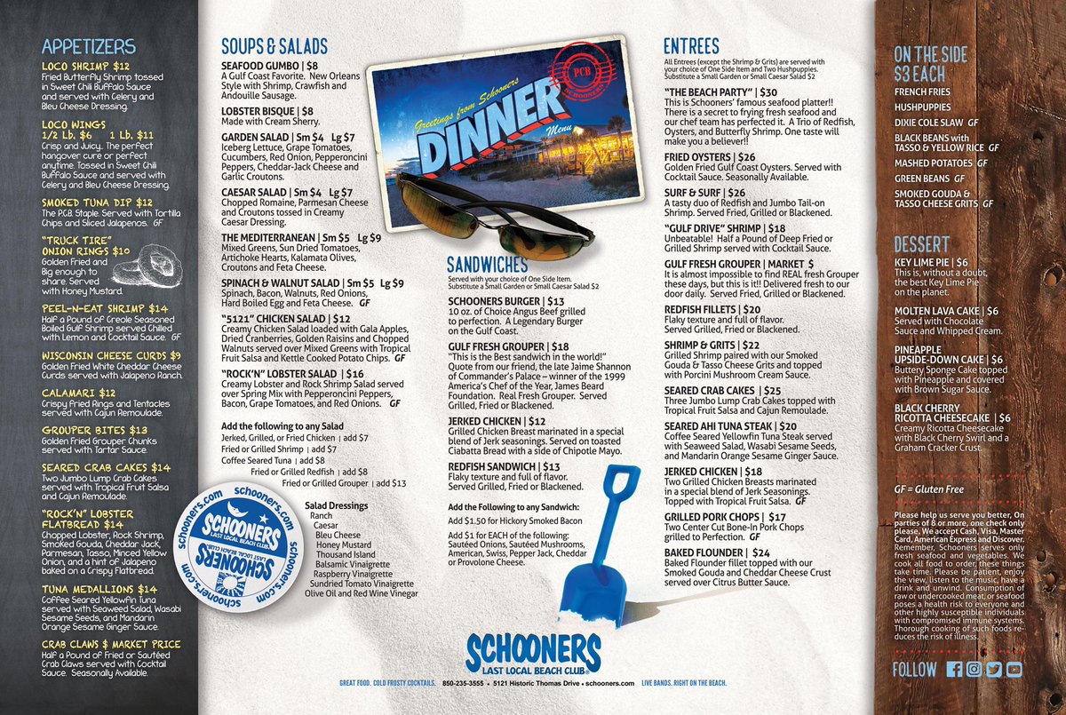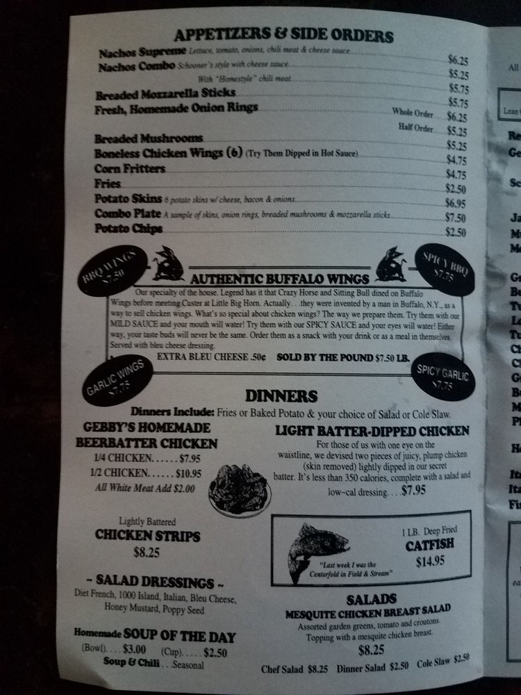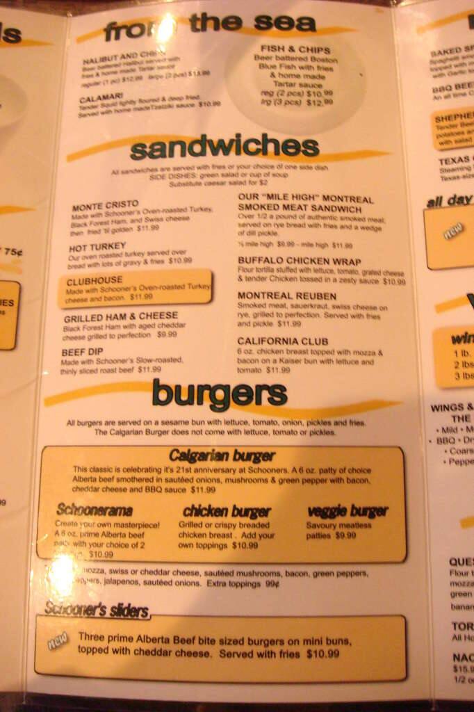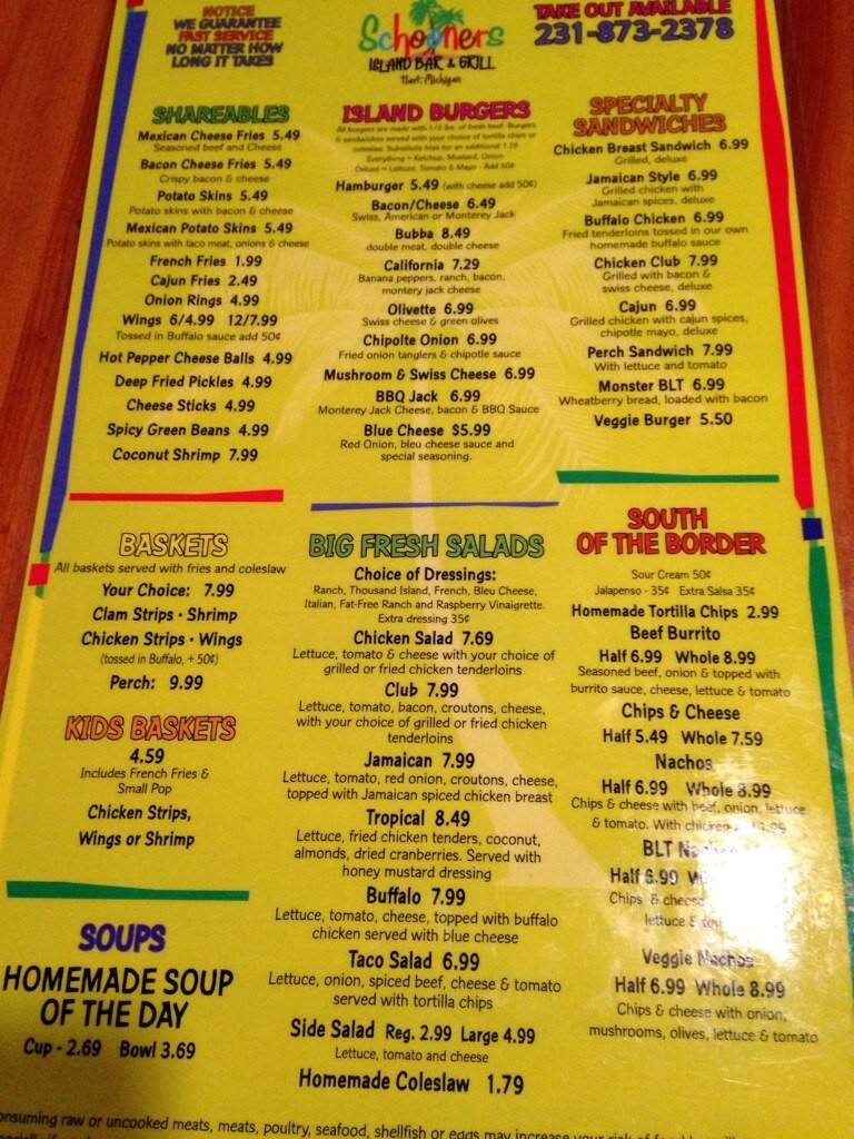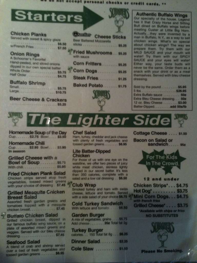 schooners menu