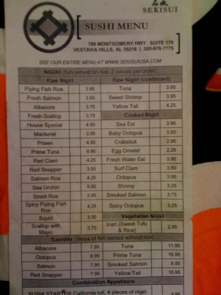 sekisui menu